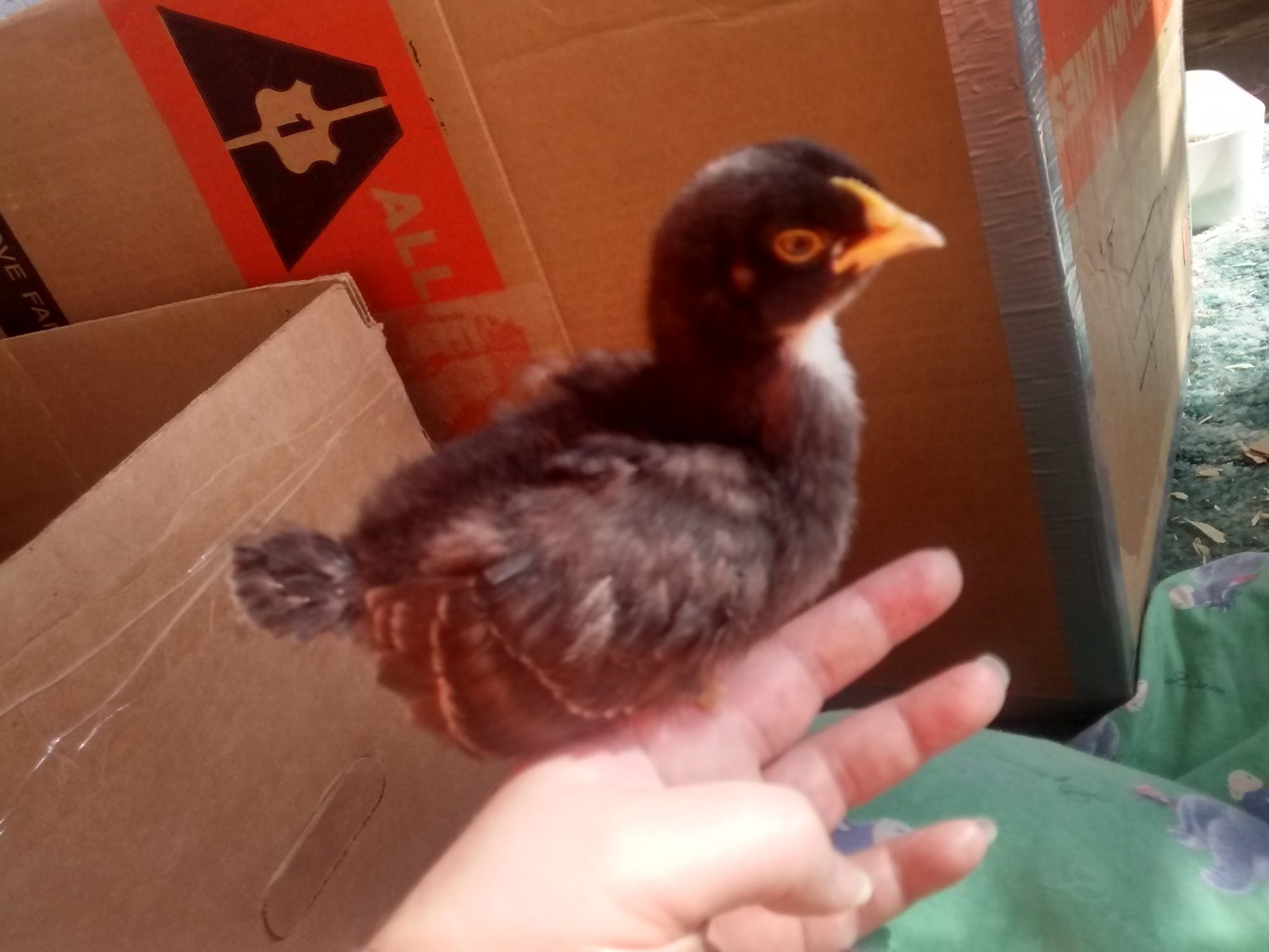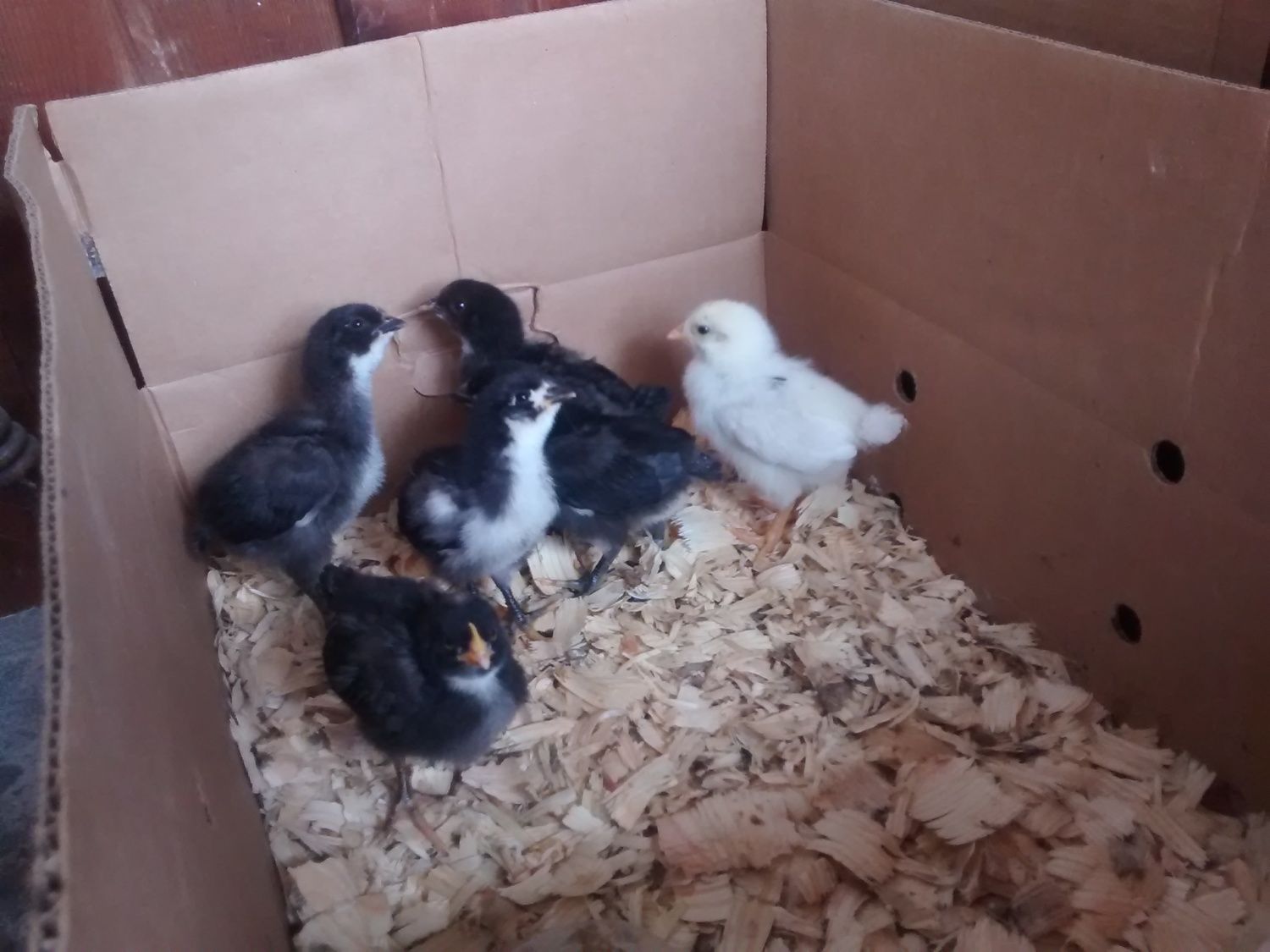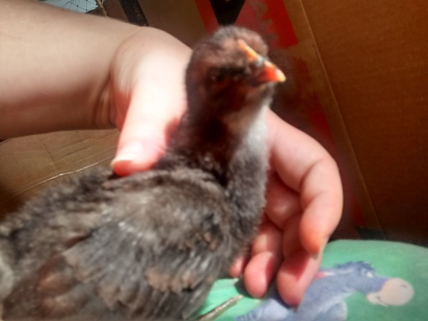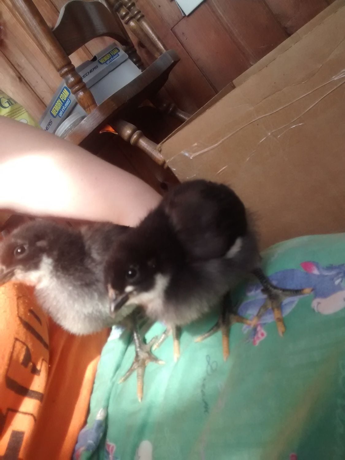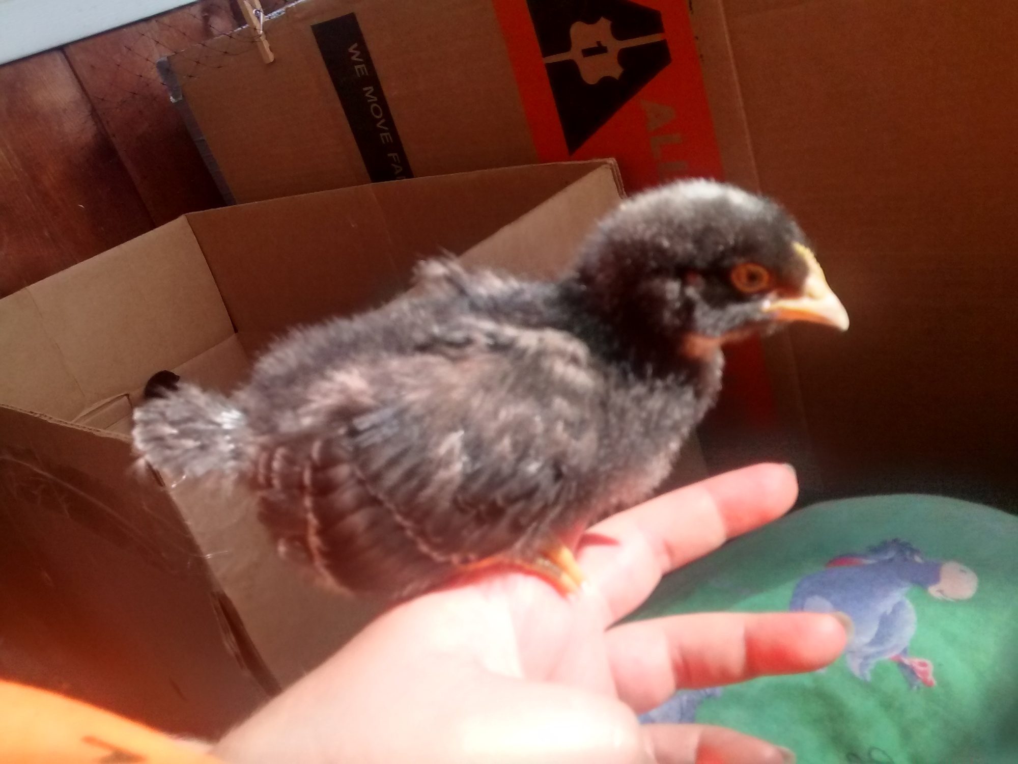 Okay so after morning chores I tried to get some pics of the chicks and wow black chicks are hard to photograph, I suppose it makes sense just like black cats and dogs. Your daughter's favorite is especially hard because she doesn't have any white marks to differentiate that black blob that shows in the pictures lol. Anyway these are some of the best ones I got: