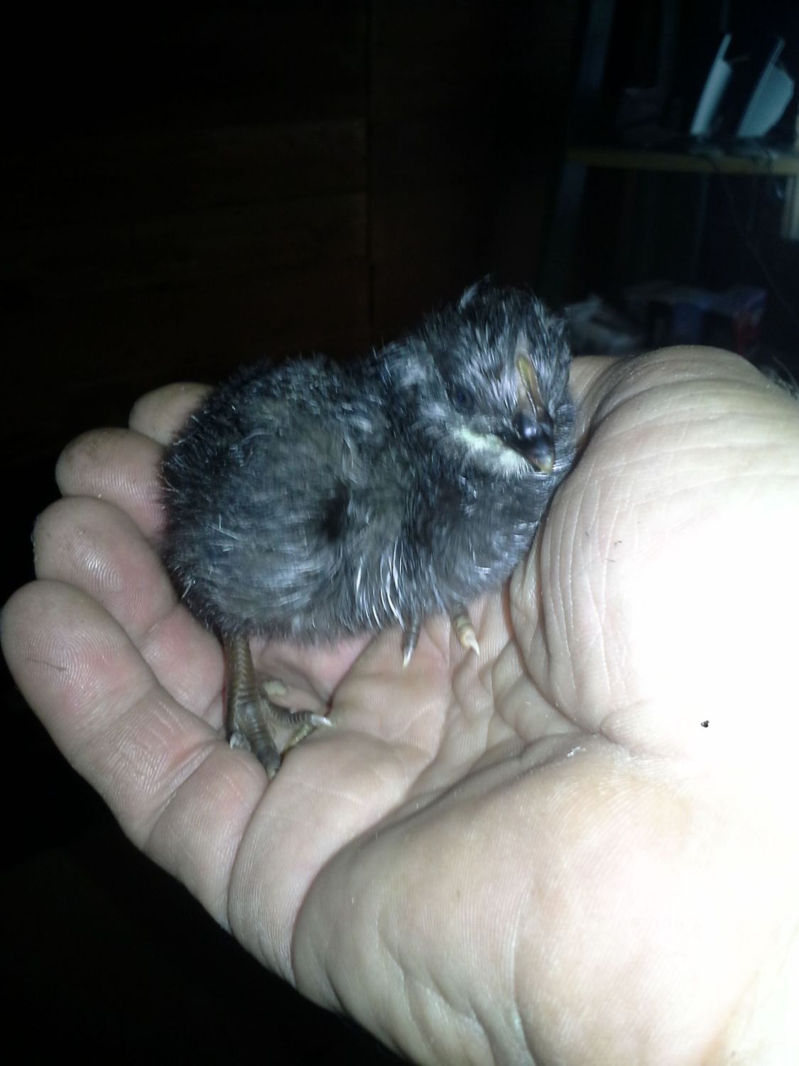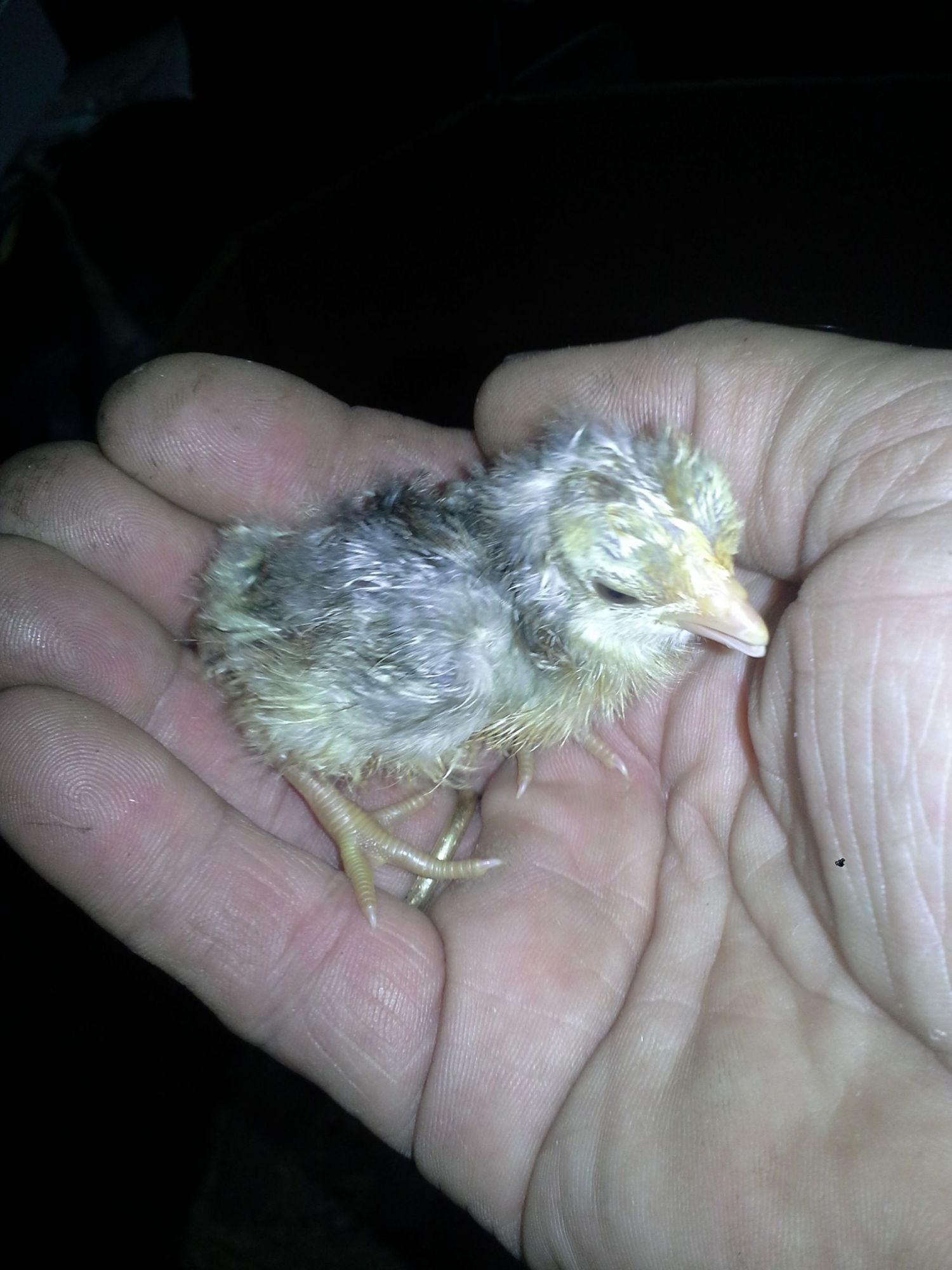 So just as I was getting to leave for the Dr.'s I saw that the egg that had a crack {not a pip} had split open and the chick was all over the place pushing eggs around. It must have started something up as the bantam started zipping right then when the new chick kicked the bantam egg up against 2 other eggs with the zip down between them. Aaaargg panic time. Since I already had inserted a tube so I could add water I guided a piece of warmed copper wire in and gave a small nudge, it rolled over, two egg chips flew and the bantam was hatched. Yup , late for the Dr. but it was worth it. Got home 4 hours later and still just the three of them. Remembering older days I hung up a couple of wet sheets and towels, put the kettle on and waited for the windows to steam up. Once it did I popped the hatch and moved the 3 to the MBP brooder. the readings on the incubator went from 68% up to 72% when I popped it so all good. Here are the kids so far. the first was a HighlineX. The egg kicker, maranXamericauna. My oegb. I think I know who mom was. I can't help thinking that watching eggs hatch might be more entertaining at Xmas time than watching that fireplace they keep putting up.