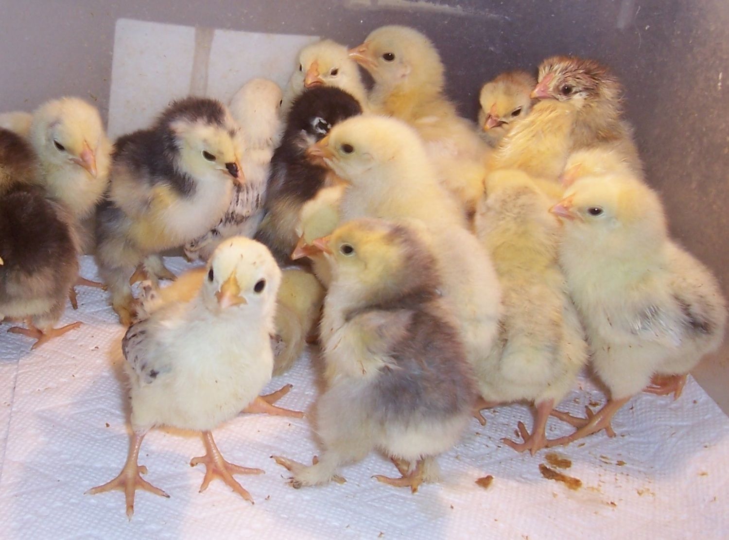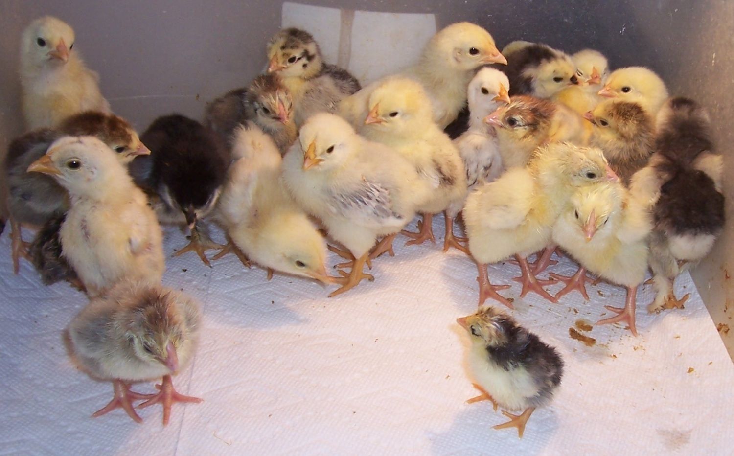 The hatch includes a few Cochin, Columbian Wyandotte and one tiny Serama.