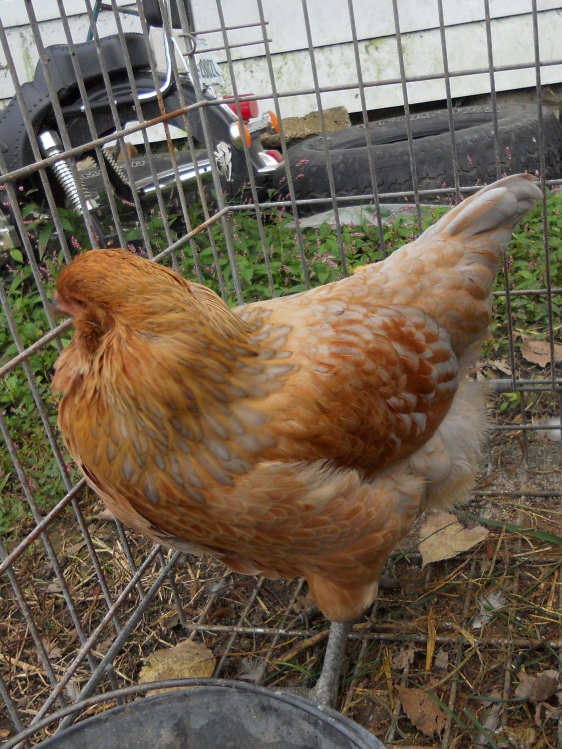 Hello and thanks to all that have commented... I wanted to provide a few updates. This lovely chicken still has no spurs, has not crowed, and has laid no eggs. Still unsure of gender, but it does seem to have more tail curl since they began replacing feathers. He or she was bought at Rural King, and I found out it came from Townline hatchery which said these chicks are Araucana-Ameraucana Line. Without further adieu, here are some pictures taken today. Thanks again, hope you enjoy the update. K.