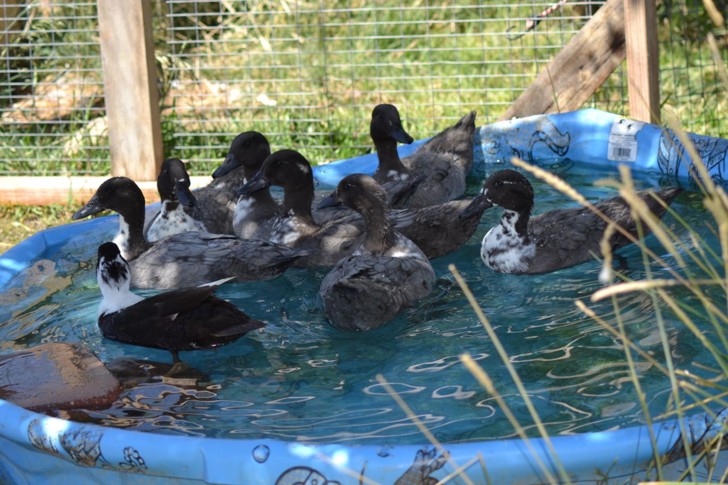 They are beautiful, I can't believe they are 6 weeks old already. wowThese are my Call/Runner babies at 6 weeks, in the pool with their Mom (small black and white). From the quacks I have 6 hens and one drake, YAY!!!. The drake is the one in the center with the freckle chest and the spot on the side of his head, he likes to whistle back and forth with me, he's so cute.
