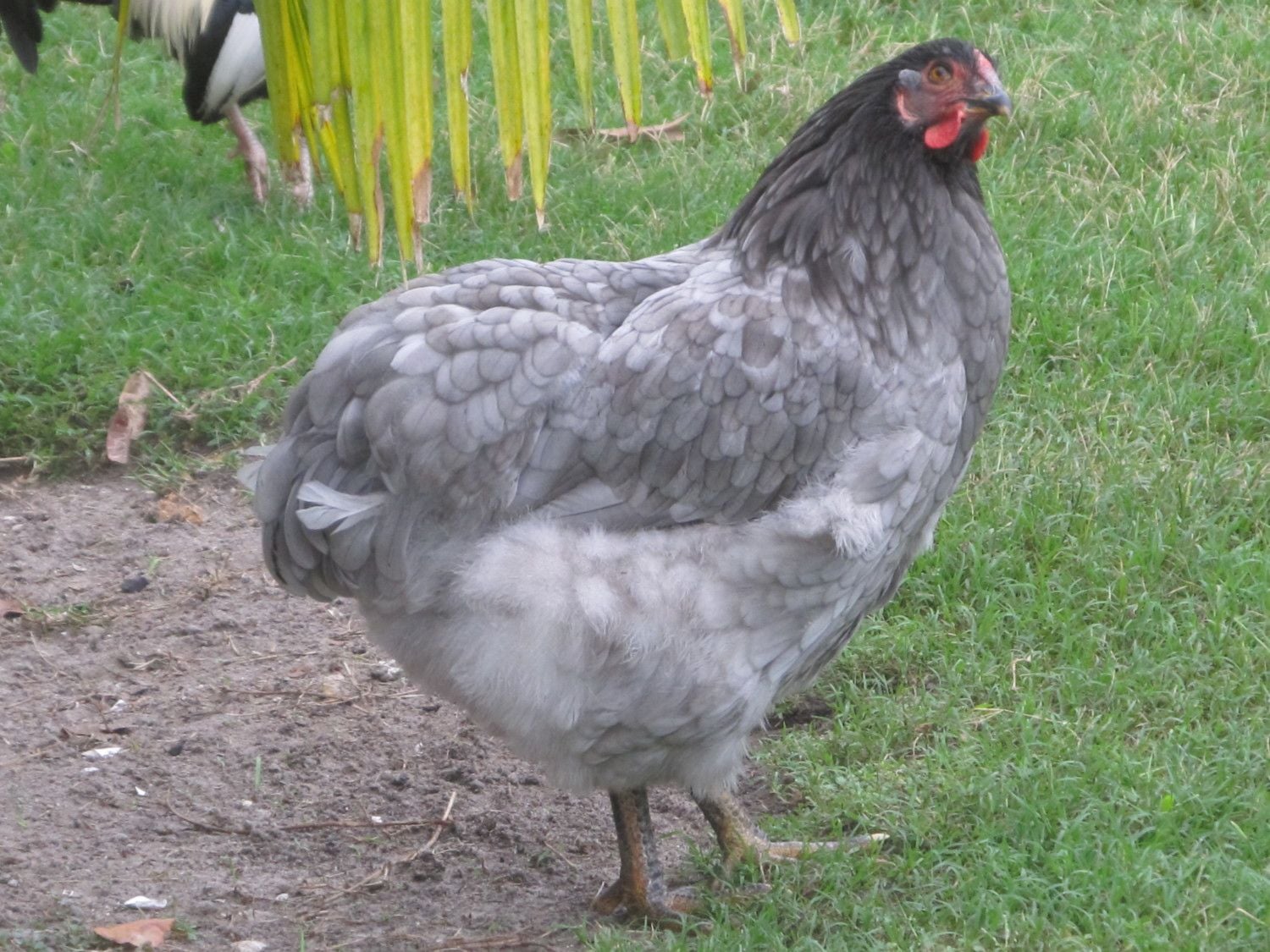 well she might be a muttBlue Wyandotte? She's not rumples, just well feathered, like a cochin butt. But she had that deep bowl shaped Wyandotte body.