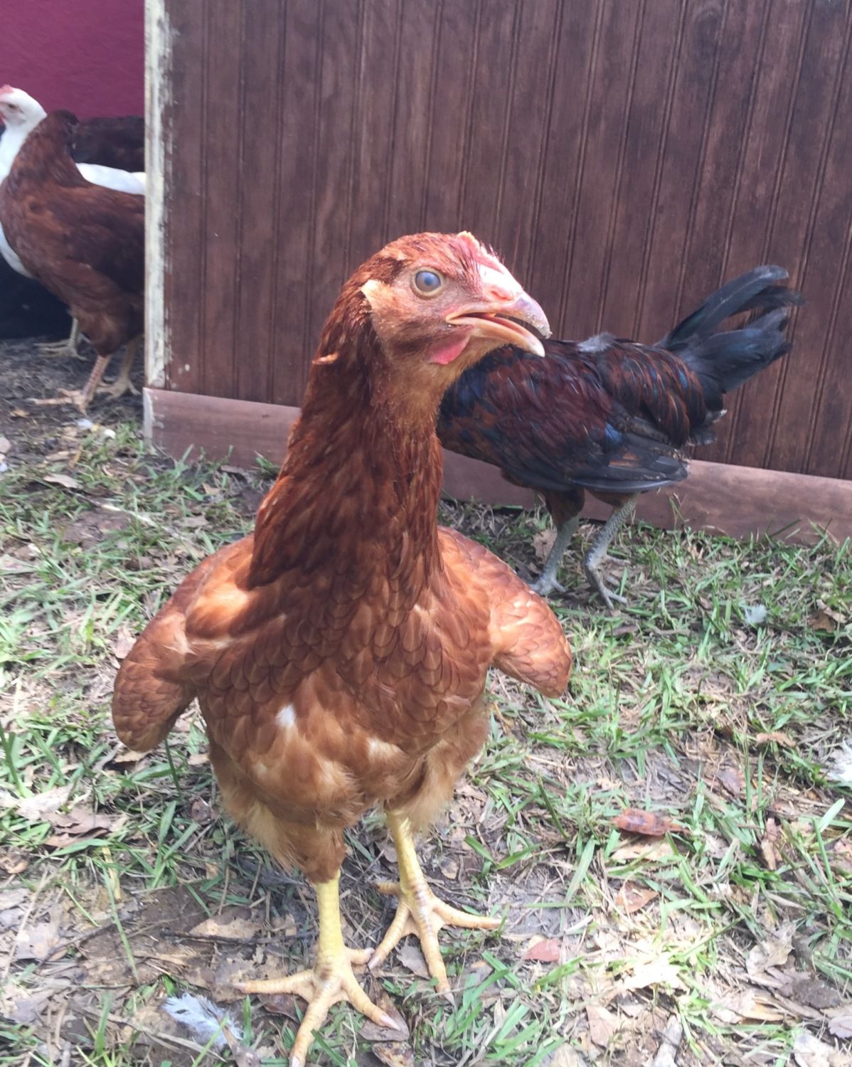 The first pic. Of the Orpington on the rock is funny