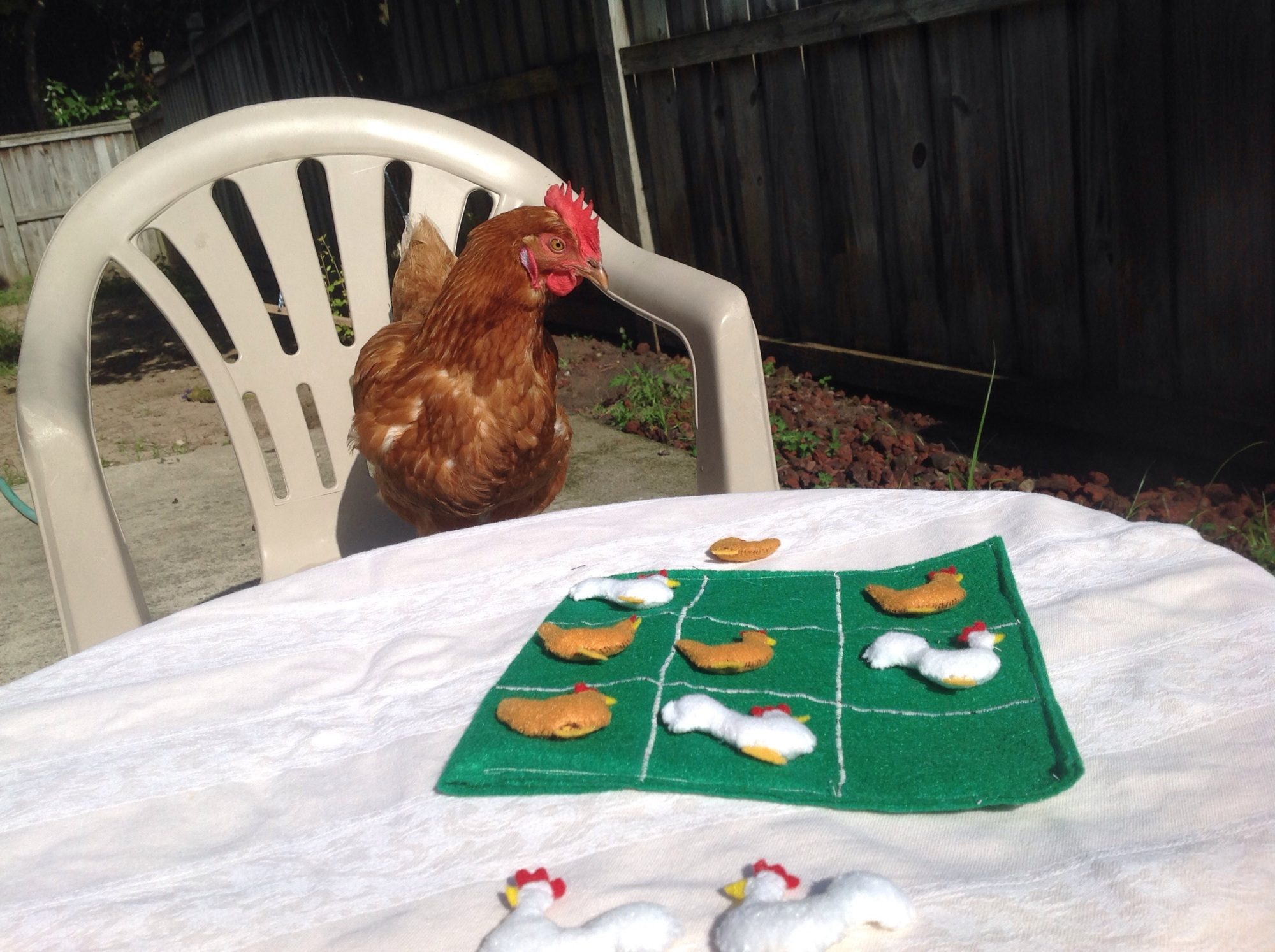 This is jenn..standing in the yard in a pile of molted feathers ..they just kept falling as she stood there! Too funny Michelle