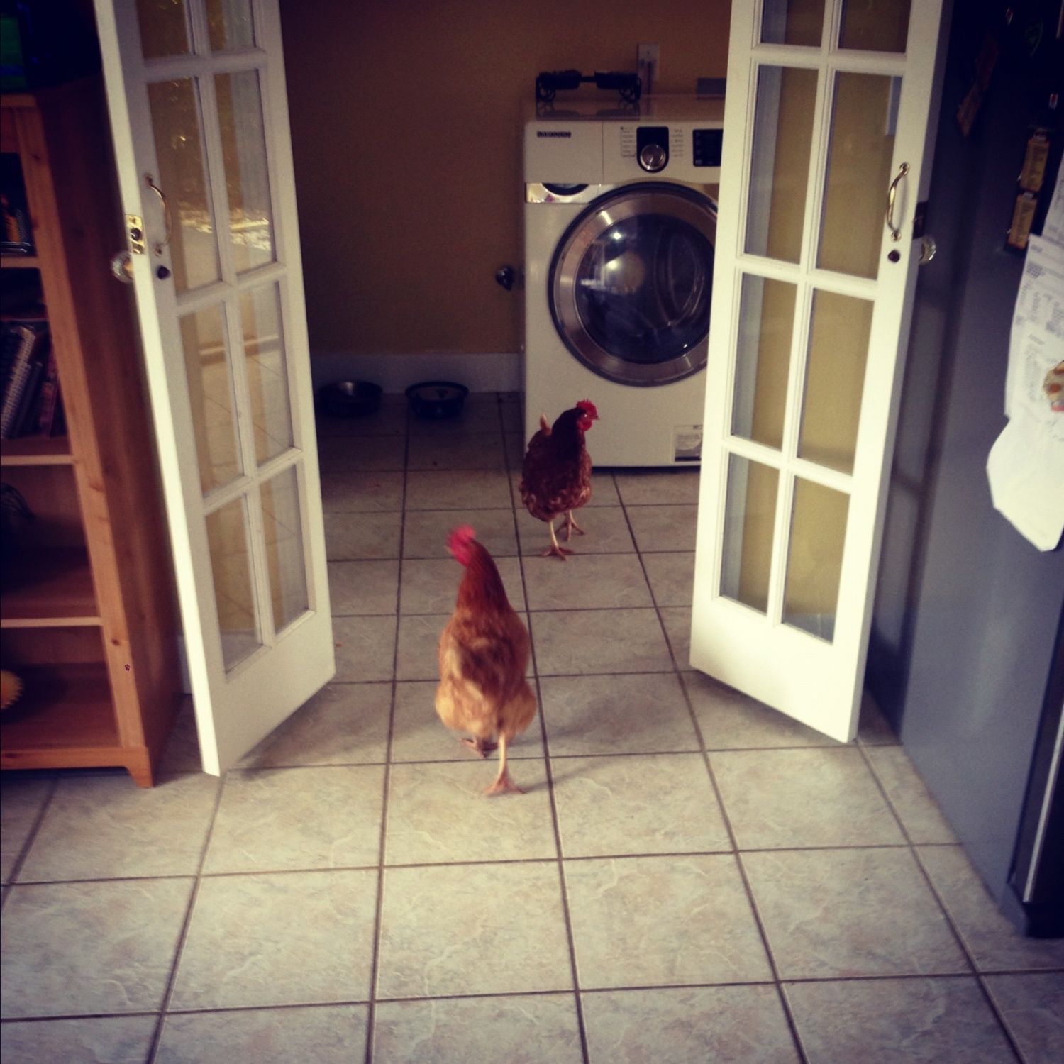 In the third photo where the two chickns just walk right into the laundry room Do you just let them roam around the house ?????