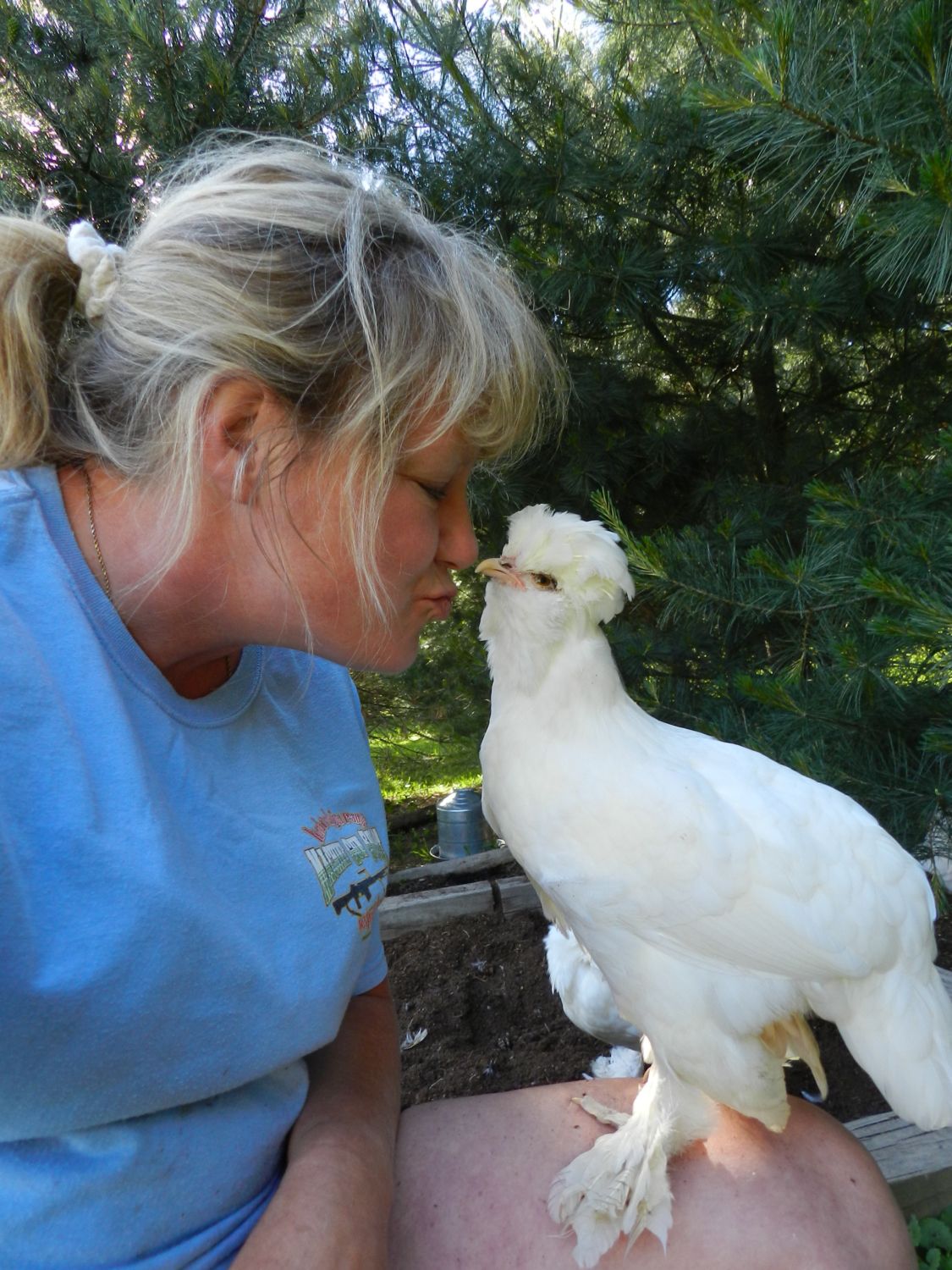 Quote: It's a white crested black polish rooster. He was having a bath to get ready for a show and I decided to give him a Pee Wee Herman hairdo with his soapy crest. He did not look happy.![]()