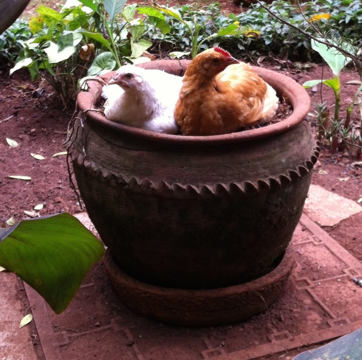 So that's how you raise chickens in Kenya! You grow them in pots like flowers