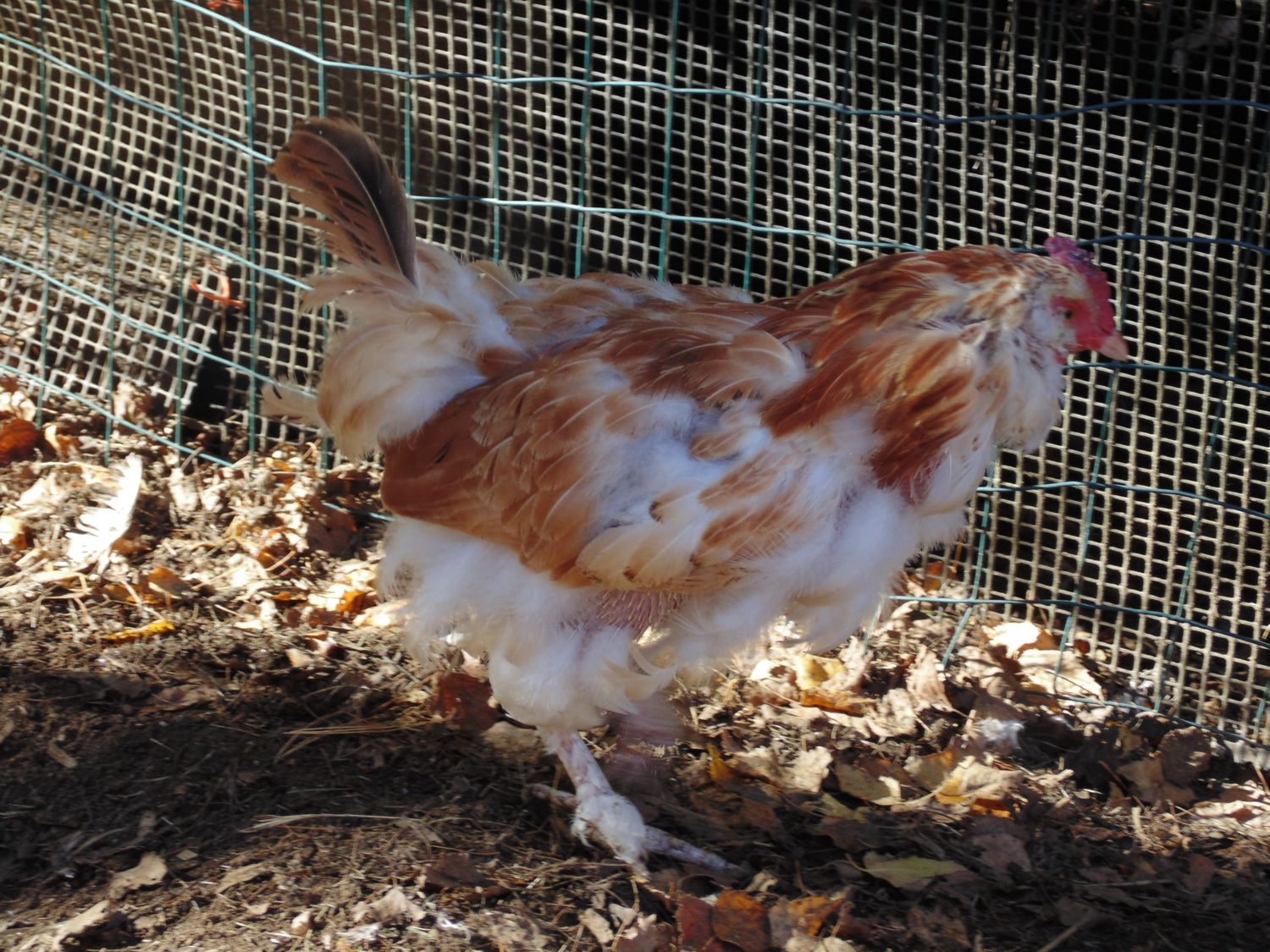 she once was pretty! Now we have a hard time not giggling. I feel so bad but it's hard not to. She needs a winter coat. I will say she lays the hugest eggs!!! Sometimes the size of our standards. I try to give her everything possible to have her plumage come back. Nothing works!![]()