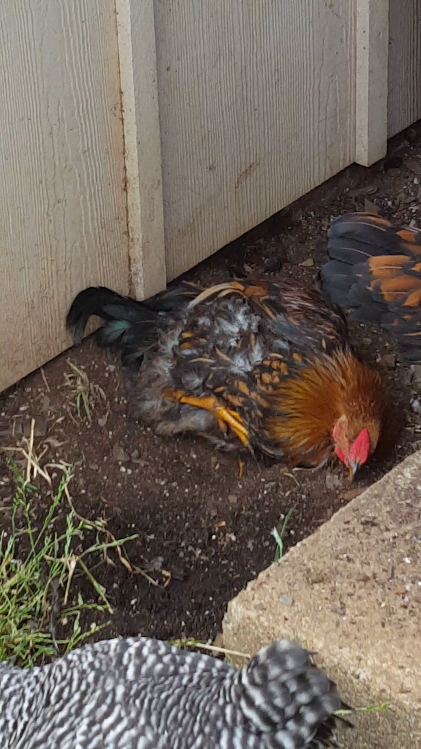 Aug 10, 2016 #69 dcatalano Hatching Joined Jul 15, 2016 Messages 3 Reaction score 0 Points 6 Location Colorado Our favorite girl, Garlic, enjoying the prime dust bathing location.