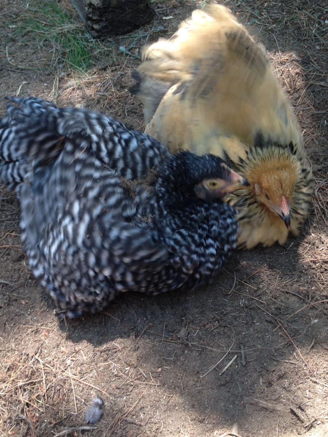 My pekin Esme and D'Uccle Beatrice were totally enjoying the afternoon sun together in the communal dirt pile. Just livin' the chicken life to the max.