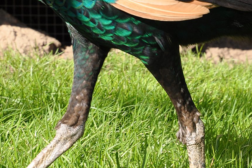 We can see the black dark green iridescent of his pants ... we need more pictures of his pants !
