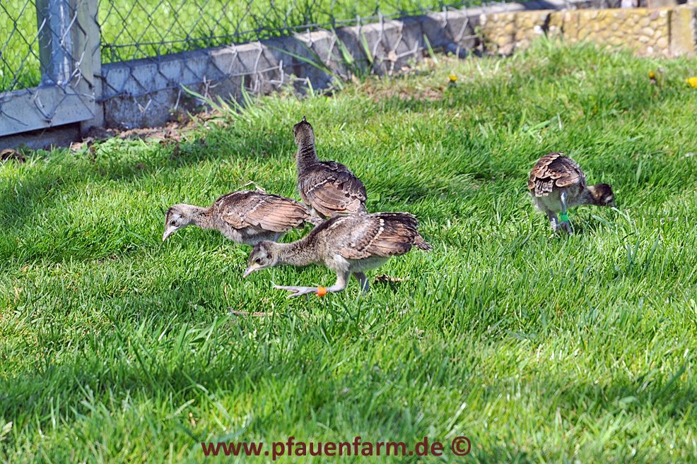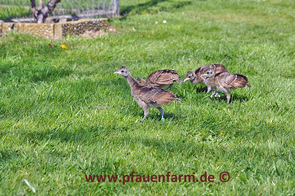 Pictures from the Sunday afternoon walk with my first green peachicks from 2015 (two weeks old now).