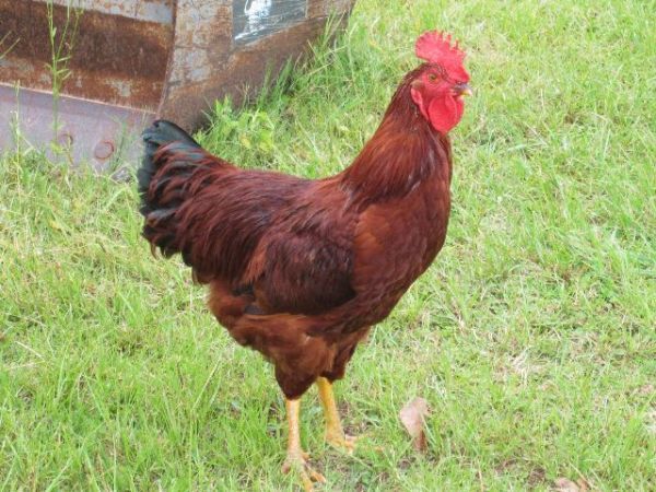 I have a 3 1/2 month old Rhode Island Red rooster. He's big. He's gorgeous. He's people friendly and comes when you call him. He follows me around. He rescues me from horrid bugs. I point, he eats them. He's actually pretty cool.