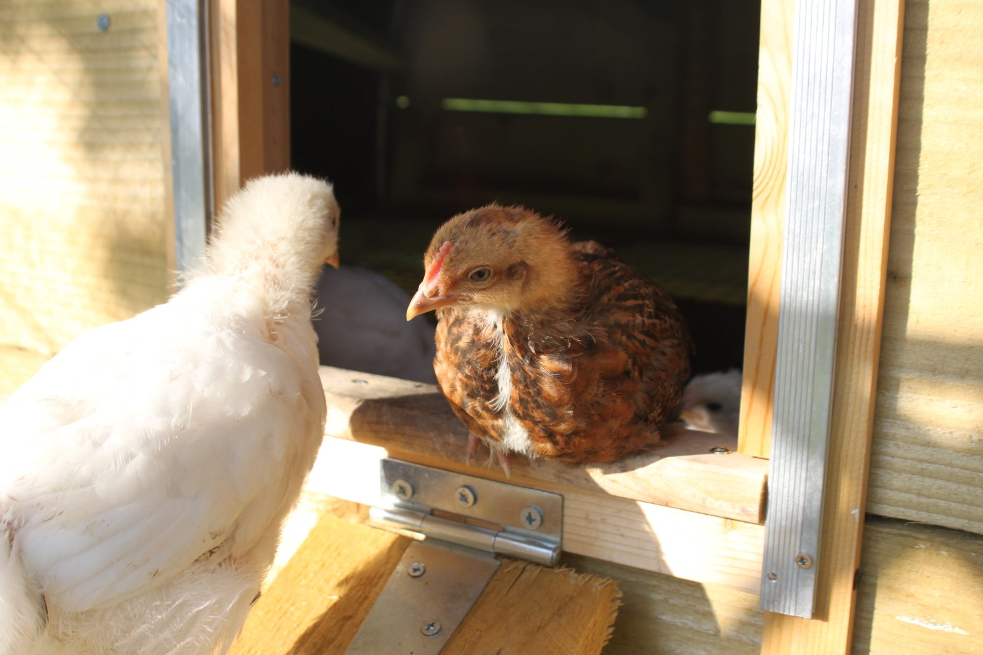 They are all in, eating a bit and getting a drink and some are settling down for the night!!! I counted 3 times, yup all 15 are there! We had our first outside adventure, well most of us..only 3 were chicken chickens!