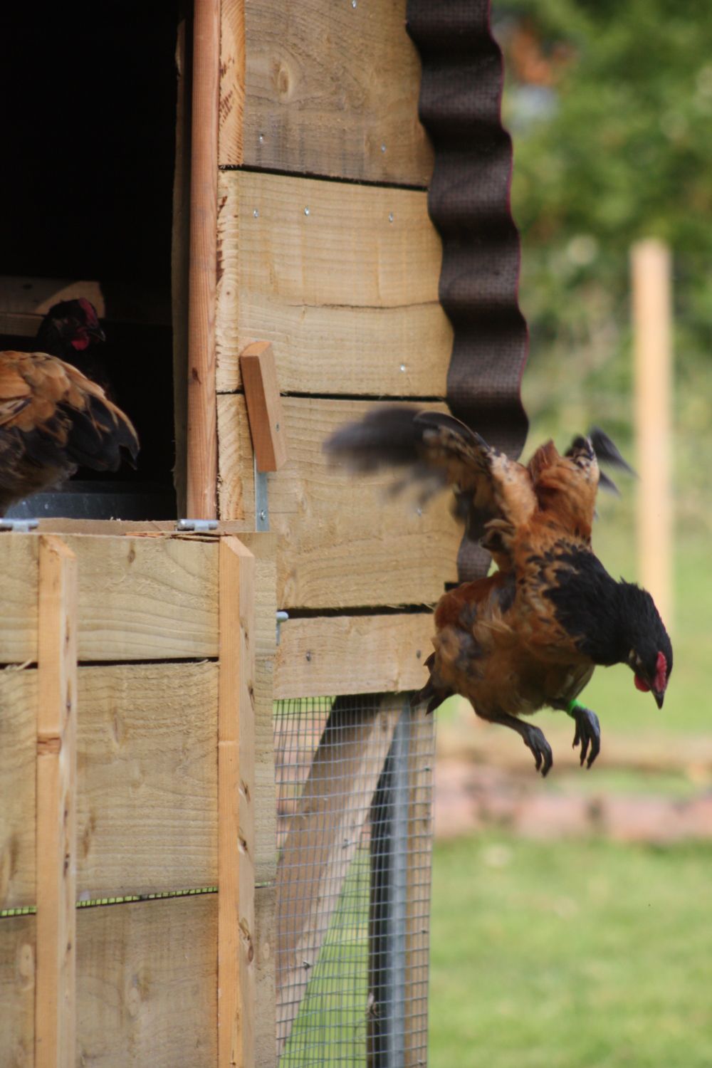 Well, decided tonight I was gonna let the lot out. Found some chicken wire I forgot I had, 2 feet high, but kinda long, so made a makeshift pen, set up my chair with guiding stick and opened the door. Wayyy better than tv!!!