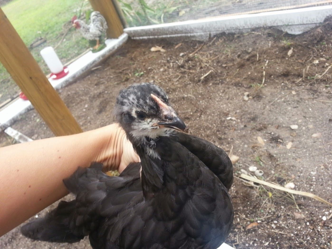 Still looks like a pullet. Comb is tiny and no hint of color.