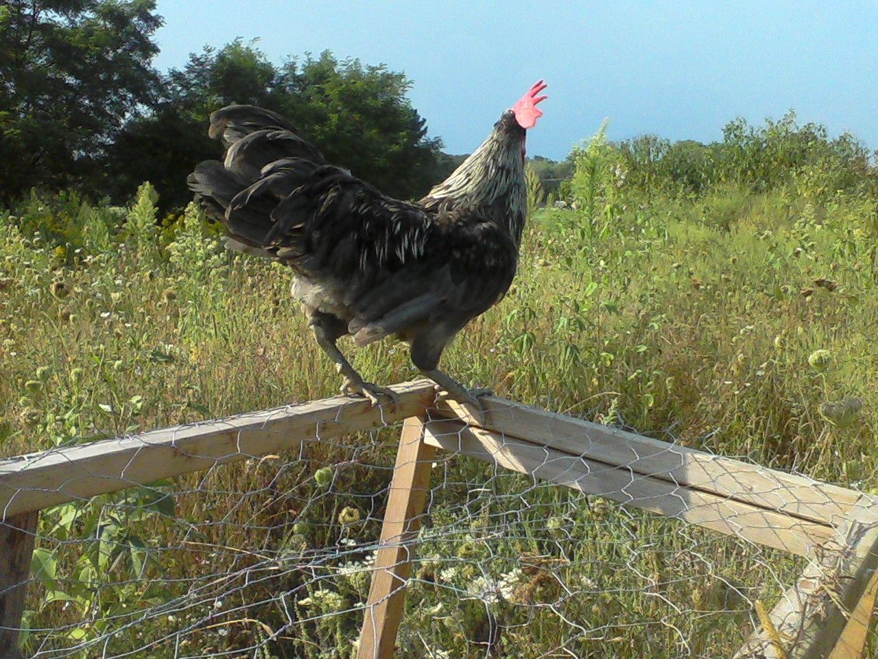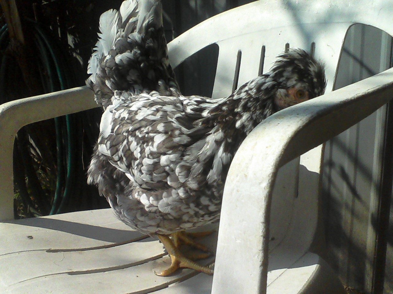 I have a spiffy camera, but of course, I don't carry it around with me and don't have it when I need it. What do I have on me? A crappy iPod camera. Chicky-Chick was feeling rather fabulous in the coop the other evening .