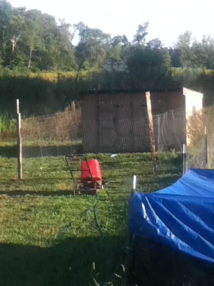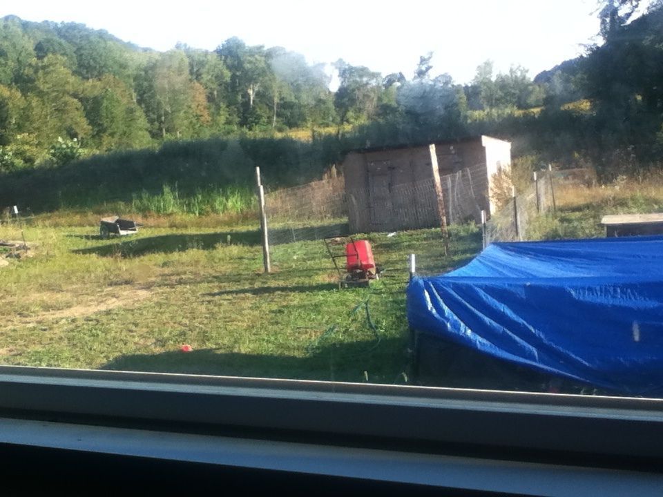 My little chicks I bought from minihorse927 at the swap are getting to big for their brooder and my DH is always having to construct or move or redo something for me, so I decided I was going to throw something together for them to get outside in the sunshine, so we had some of the fiberglass? fence posts so I stuck them in the ground and took some chicken wire and zip-tied it to the posts and added a chicken wire roof which was also ziptied, and thru a small tarp over it. It's not very big 3x6 maybe. I used about 30 -40 zip ties though! It is still standing and they love it outside, although It's been too cool to put them out this week. Hoping to get them outside thurs afternoon, my next time off from work. Hope to get them different housing too, as the others I got at the swap are all in my other tractors/pens in quarantine. Oh, btw, gorgeous view!! I think you did a good Job!! I couldn't have put real fence post up at all!!