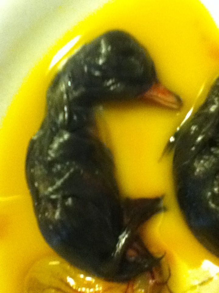It's been a sad morning. I did eggtopsies on the one bantam egg that didn't hatch and the 3 duck eggs that the stupid styrobator killed. I'll use it as a "fluffer/brooder", else I'd just trash it. I've lost so many before hatch, it usually doesn't affect me now, but I'll admit I cried over this bunch.