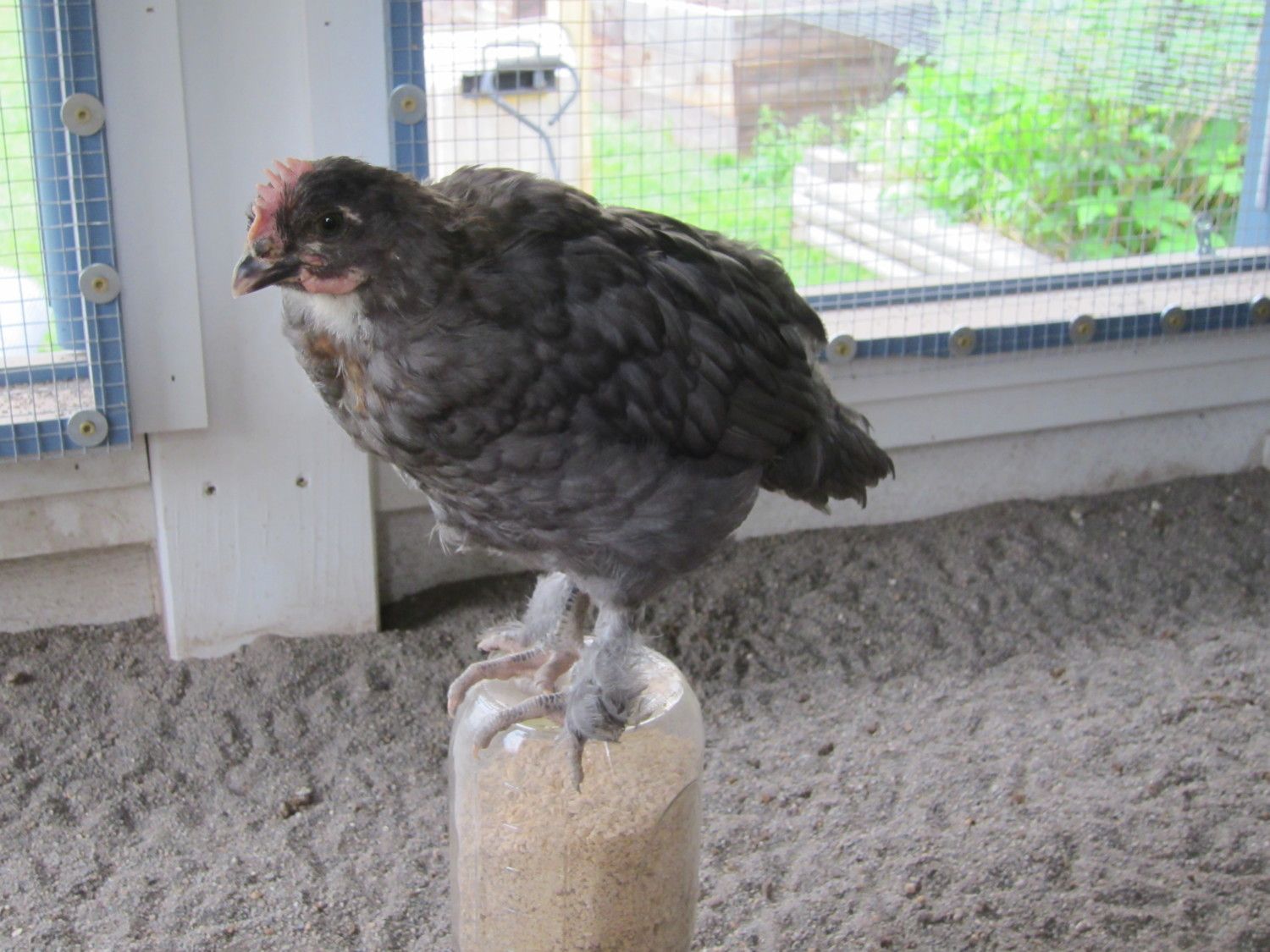 lol, yep that's a blue cochin. I've got black and barred standard cochins about the same age and they look the same.I have no idea. I bought a dozen eggs from a breeder (Supposedly 4 different breeds) and the one this hatched from was marked as an English Orpington! I was wondering why it had feathered feet when the other one that hatched didn't. Now I know!