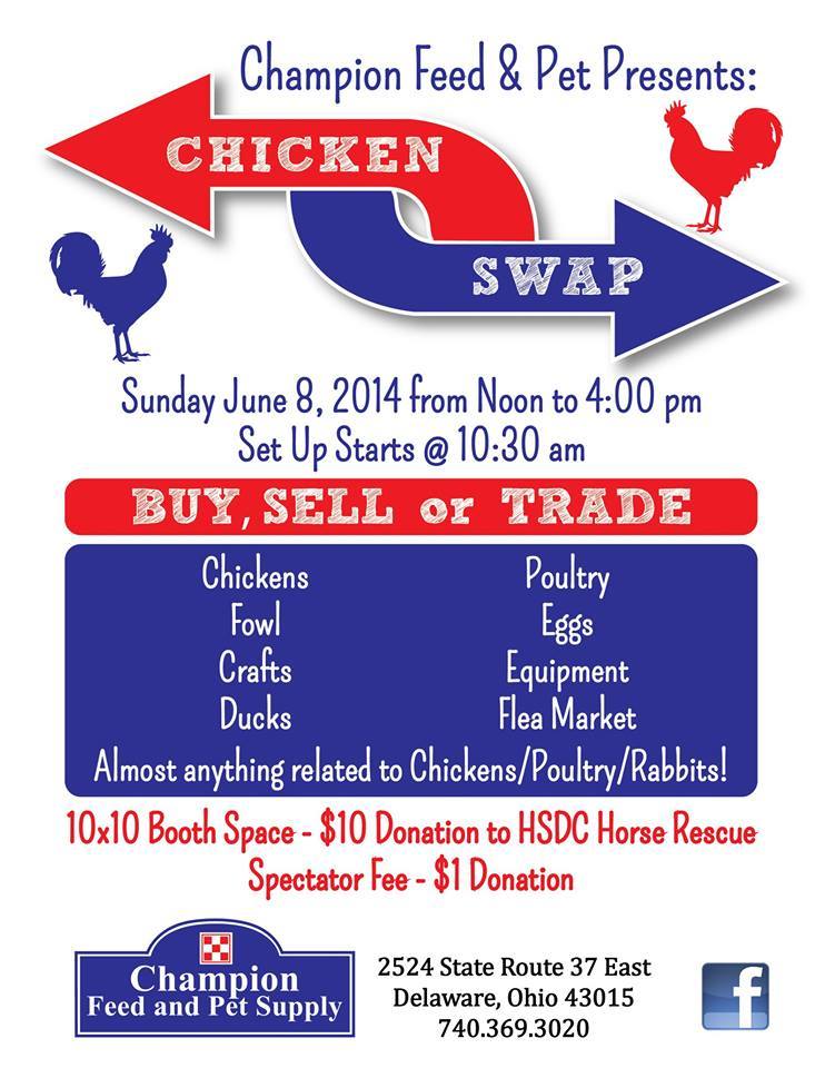 You should take a Sunday drive up to Delaware tomorrow--our local feed store, Champion Feed, is hosting a poultry and tack swap from 12-4pm...no idea what kind of turnout there will be but the one they held last fall did quite well I believe. I'd gone only to be tempted (held firm...but was tempted) and there were quite a few sellers and buyers I think, considering it was early October. He's done a lot of advertising and is combining it with the tack (and bunnies too) swap--wider audience.Hello,