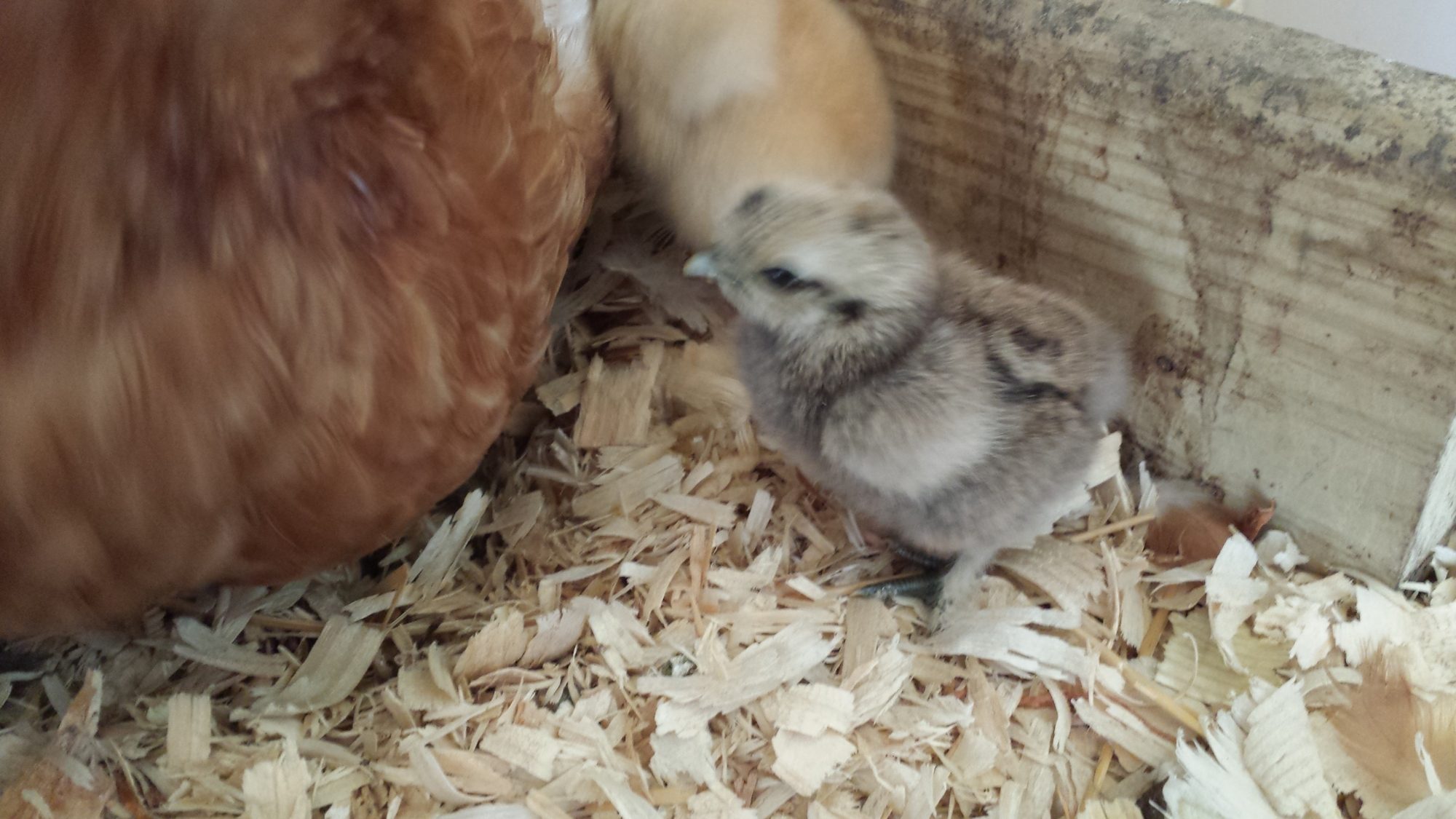 Hi everyone. I don't post much, but I had to share. I had my first hatch. I am so excited. Mommy and babies are doing great. I'm pretty sure the yellow ones are golden comet/buff orpington crosses. The little ones are Silkies. I'm not sure if they are crosses or not. Mama is a Partridge Silkie. I have a SLW Roo, a BO Roo, and a Partridge Silkie Roo. Any guesses? [COLOR=B42000] [/COLOR] [COLOR=B42000] [/COLOR]