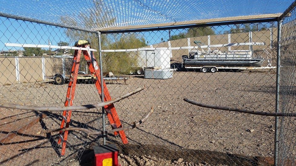 then around the run there is chicken wire about 18" up the chain link and then UNDER railroad ties over the top of that and then covered with rocks.