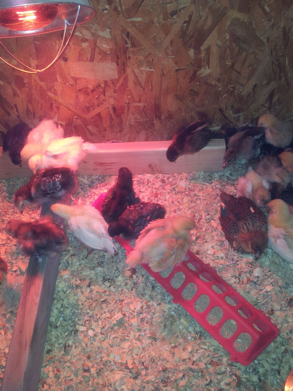 I have 31 chicks in a 3 x 4 foot brooder box in my basement. This box is bursting at the seams! They are jumping around and flapping their wings, and there is just not enough room.