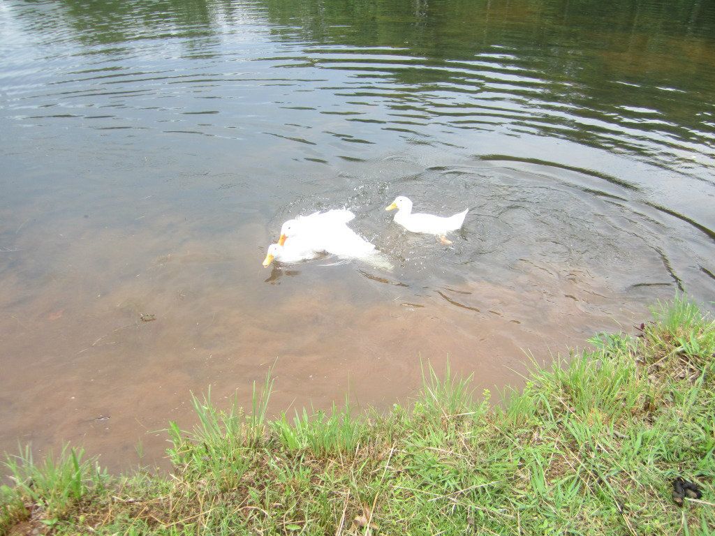 Montego and Largo (about 8-9 wks old we think) were released today on our lake for the first time today.