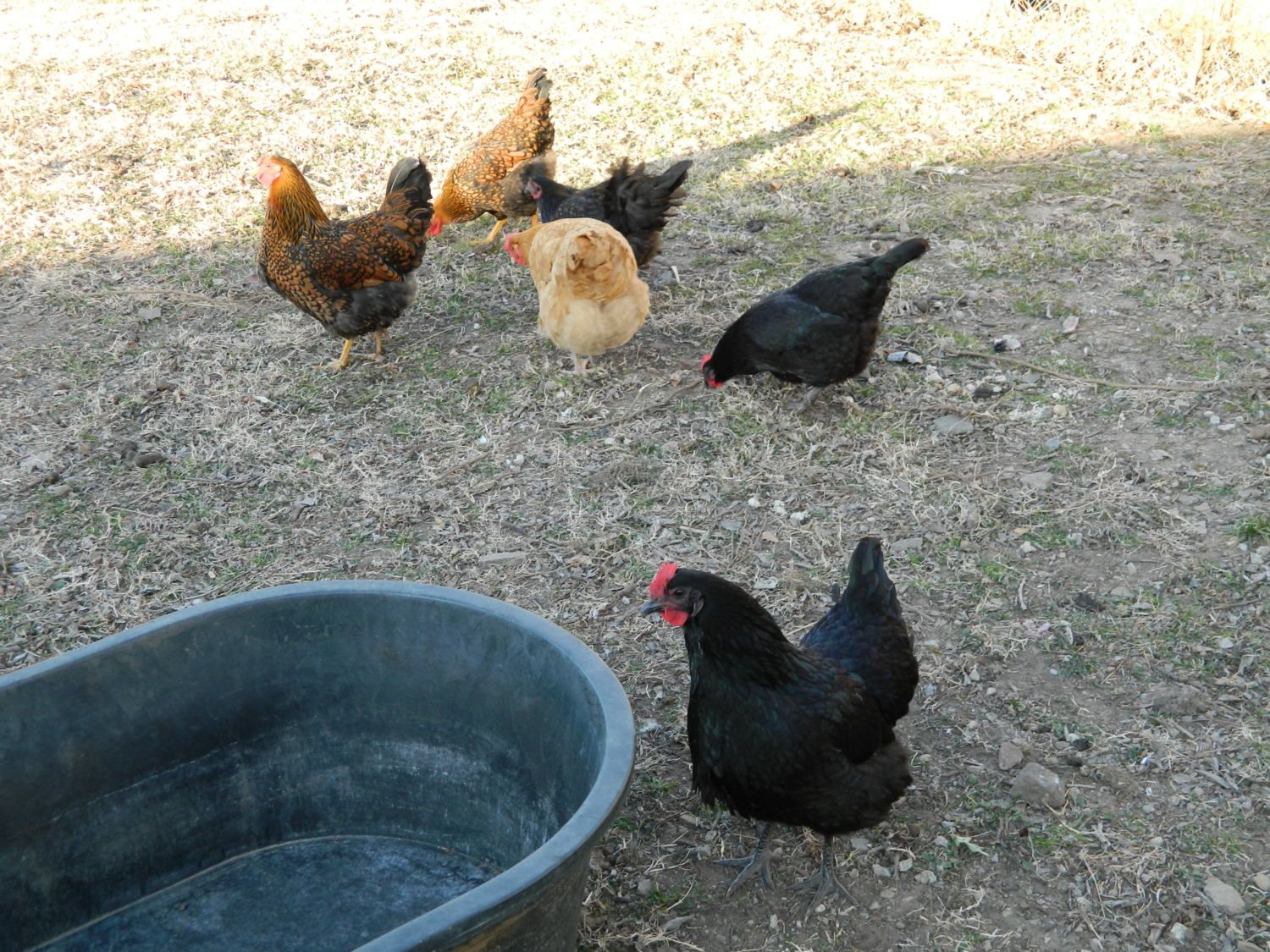 I do have a question. I had a flock of 6, but we recently lost two hens to a neighbors dog getting in our yard, and I am wanting to replace them. These are my flock. I lost the GLW and the Astralorp in the background of the photo.