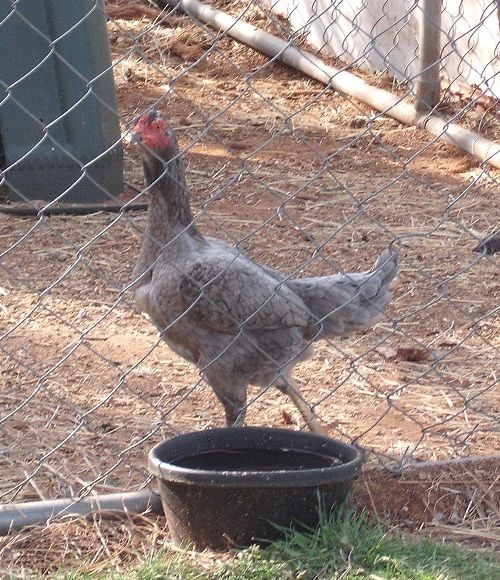 My three bigger chickens that I got from Lisa yesterday are gone. Two are nowhere to be found. One was on the ground picked pretty clean. I thought I saw a hawk in the area yesterday and should have been more careful. Tonight we are putting chicken wire over the top of the chicken pen. This is a big blow to me. If I have this much trouble in town, what am I going to do if I move to the country? One of the bigger chickens were in the small coop and the rooster was in the big one. My other hen was in the small space under the coop hiding. If I keep losing chickens I may give this up. I feel like I'm starting over all the time.