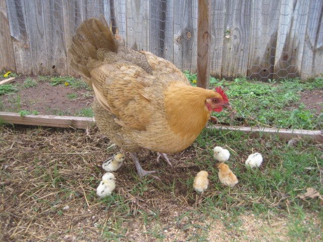 Today the large fowl mama hen took her new Serama babies out for a day in the sun. She's very protective of them and is very gentle with them. I was a little worried about them getting squashed since she's so much bigger than they are.