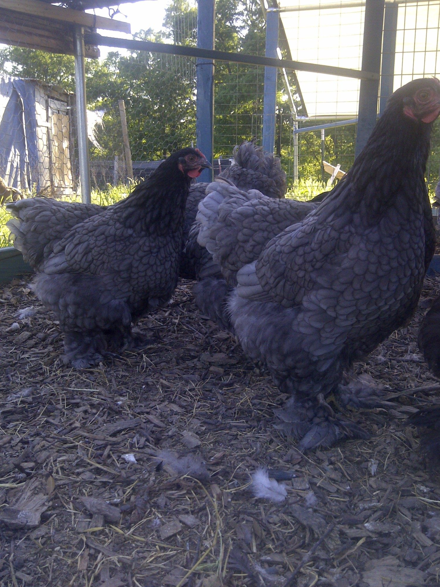 The lady we got them from has Blue Salmon in her flock also (which is how I got my Blue Salmon boy). So you do have a chance of a Blue Salmon. I can't really tell what Blue Salmon girls look like, you have to look clear under their feathers, there's not a lot of difference from the outside. But Blue Salmon boys do look different than Salmon boys once they start feathering in.