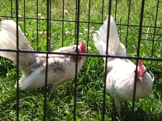 Mitzi, our hoop houses take 3 of us to move but I love that I can move them to fresh green spots in the yard every week. Ours are in the shade too, I have a covered dog kennel but it is in full sun and the birds are just to hot in there. That is the birds that got moved to the new hoop house. We will be moving the dog kennel (takes 5 or 6 of us to move it) to a shaded spot before we put anymore birds in there. The hoop houses end up being about 8' x 10' so could house 6-8 LF birds easily. Right now in our first one I have 8 young roos in it and all is peacefull for now, lol. I figure in another month or so we will have to figure out something different for them but in the meantime they are enjoying the fresh grass and shade.