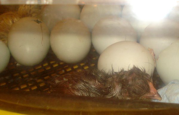 Baby #2, one of the Brown Reds that I've reeeeaaally been looking forward to. 3 others are pipped. This hatching stuff is too addicting.