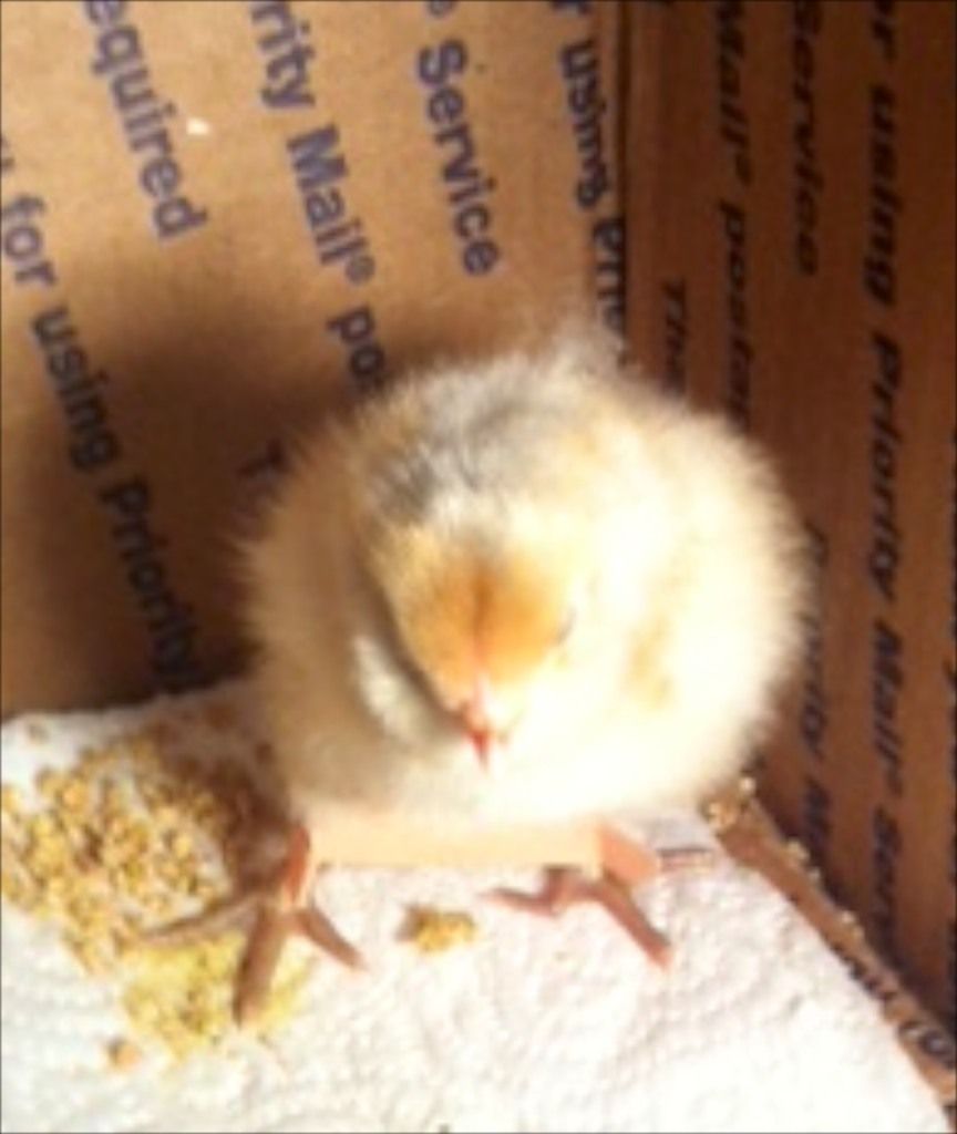 So maybe some blue eggs in your future.Americauna. They're my first 2 americauna. So far they're personality is so different from my other chicks that i've raised. They're like little puppy dogs. they follow us when we're by the aquarium, the little dark one with go so fast, that he has to flap his little wings. its so cute!