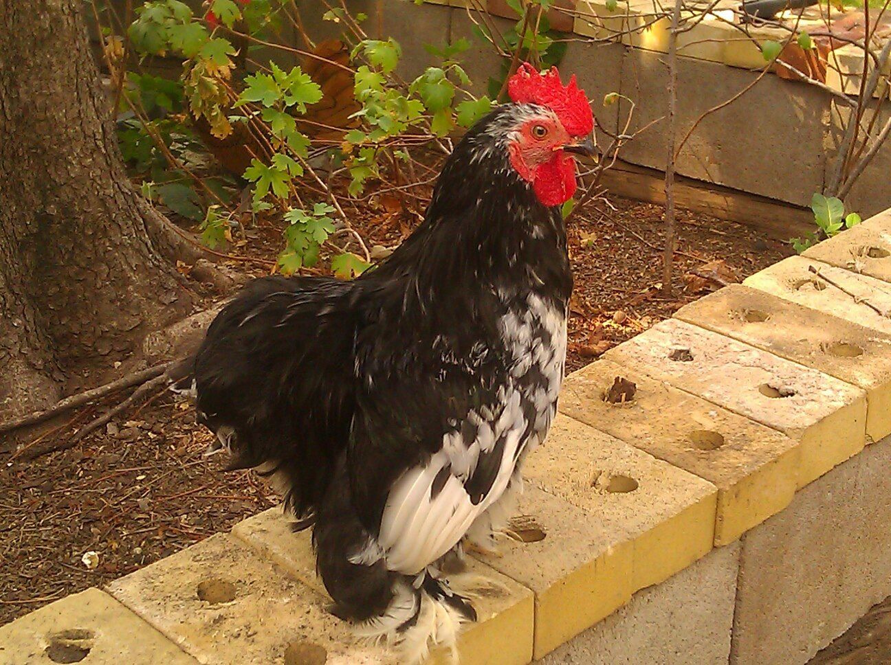 And this is Moonshine our honery little ****. He is so comical and so bold though. And he attacks everyone and everything that comes near him, even our big old tom turkeys. However, he never attacks from a frontal position. He growls and runs sideways like a little crab. All of our BR girls just sit on him when he gets too bold with them and hold him down. I guess it's easy to be amused when you have chickens.