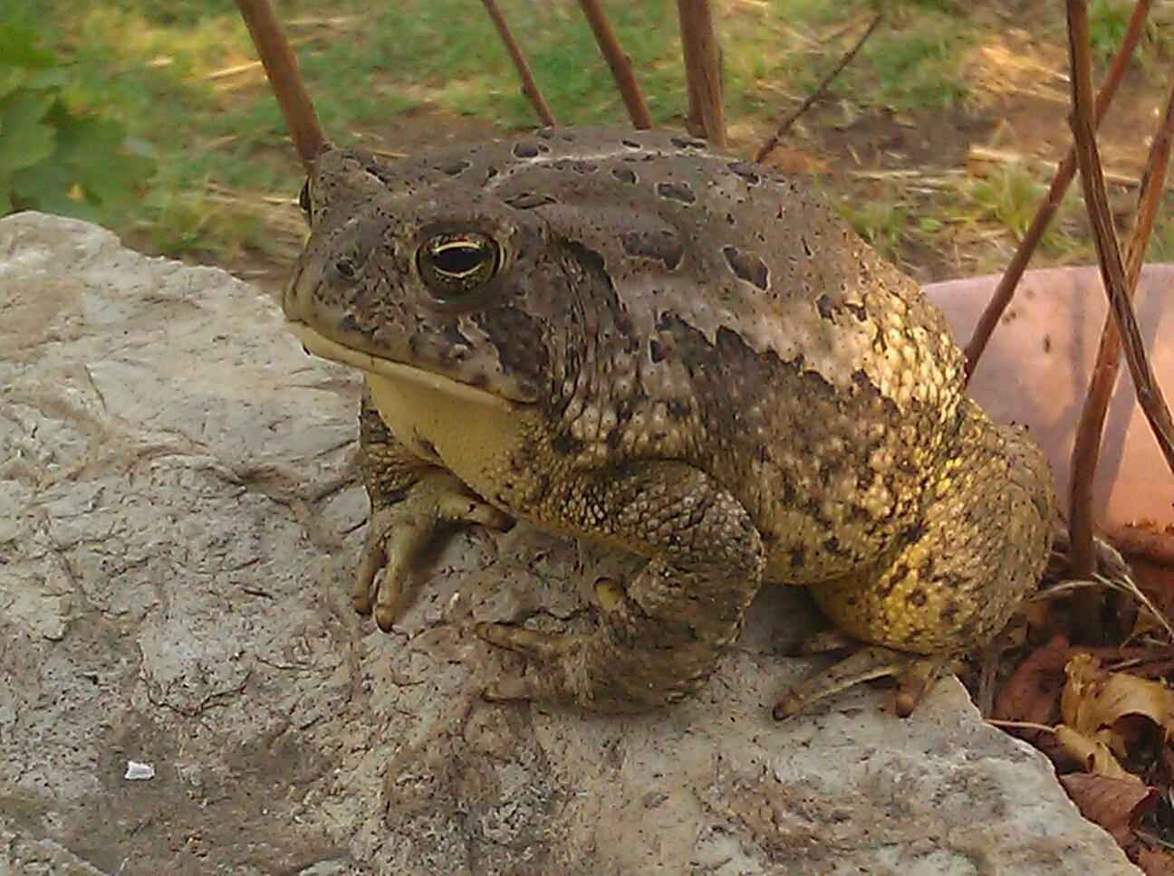 And one of our big ol' toads. The cats play with them some but the birds leave them alone. Wish they'd eat squash bugs.