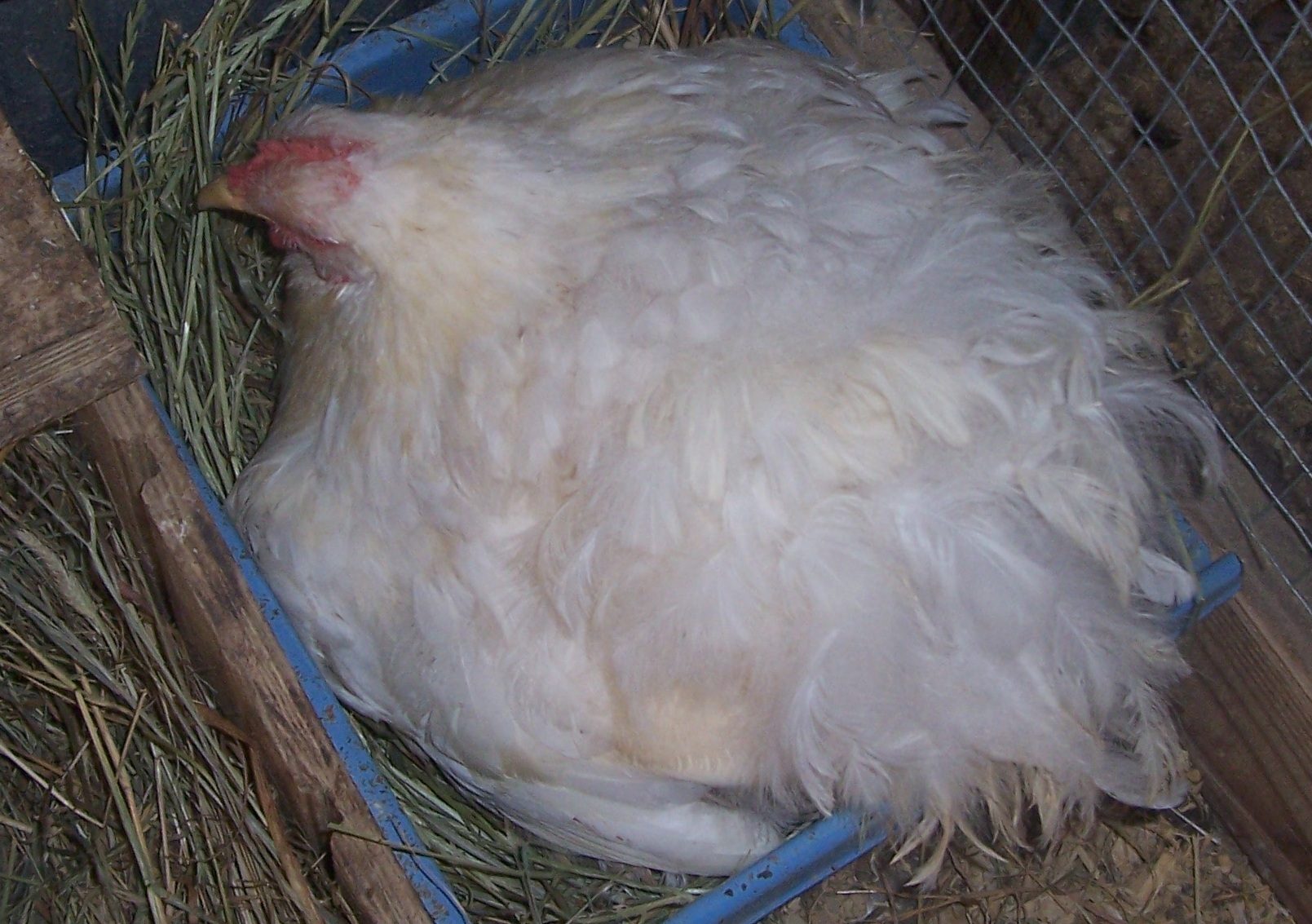 AnnaBelle has been trying to go broodie for a week now and I've discouraged her. The Rosecomb has been laying as well as some of my F1 project birds. So I put her in a broody pen and let her choose a nest and then gave her 4 Rosecomb eggs and 5 project eggs. AnnaBelle is one of Bo's Cochin hens that Michael bought at the Newcastle auction and I bought from Michael. She fluffs up when you get near her and growls...and can peck the heck out of your hand.