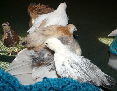 Quote: that is what is so precious Kass- chicken tv! there is just something so good about watching their adventures! tonite couldn't find one of our girls, Dot, the 'crazy'- she really is crazy- anyway, finally found her in the nestbox in the run.... silly girl, they have nest boxes in the coop...the other day was feeding in the afternoon and lifted thee lid on the bin and out popped a guinea! silly thing - must have been in there in the morning when i fed and didn't see him when i closed it- and spent some time this afternoon crocheting while taming serama babies- the little one in the front decided i was safe, so everyone one else hopped up to check it out... had 6 hatch and only one cocekrel- wish that happened more often