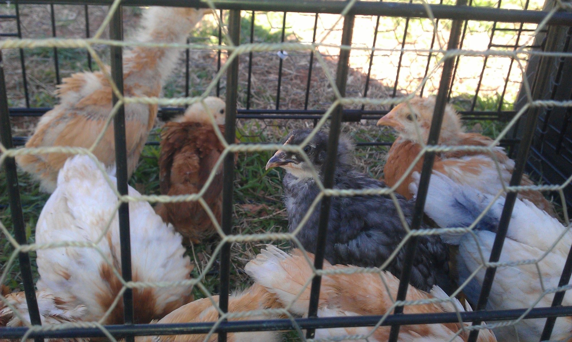 The lil grayish one is Mumble (daughter chose the name). Suppose to be a blue andalusian.![]()