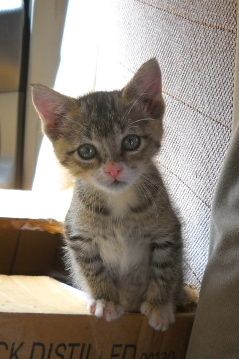 Picked up a couple of kitties from Robin's place. They are adorable! John agreed that they could stay in the pantry, for now, and we'll see if he's allergic. Cats, surprisingly, aren't on his list of irritants. Dogs and rabbits are, though. Rabbits... not ferrets. I don't know why I thought ferrets were a problem.
