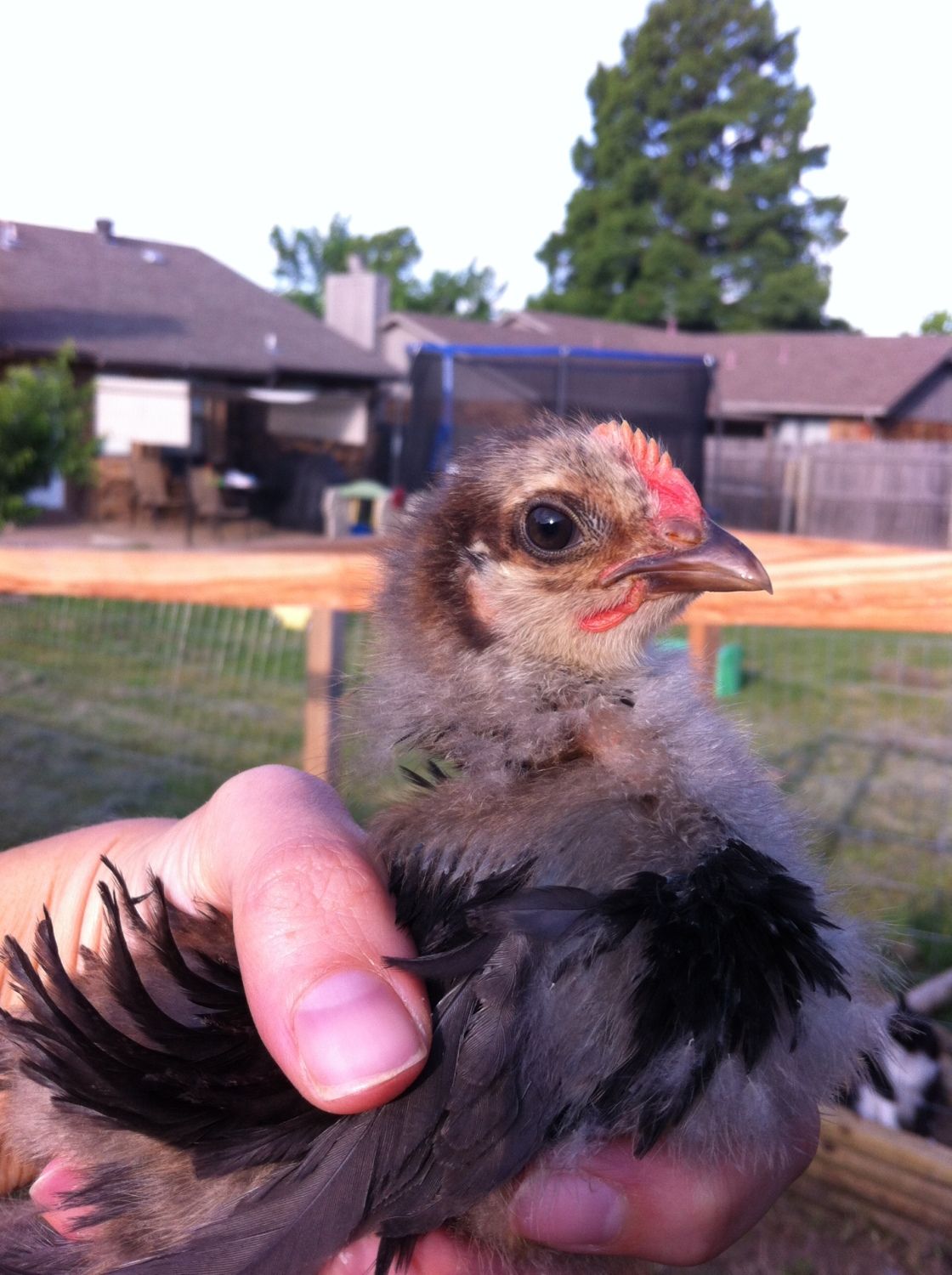 I honestly am not sure what color he is - I got him from Atwoods, which gets their chicks from Ideal, and they carry black and red frizzled cochins but he looks like some in-between color to me. I also have a silver-laced cochin that I'm 99% is a hen (second to last picture) that I would let go with the roo if anyone would be interested in them both as a pair. I'm really disappointed the little OEGB is a roo (no question here - he let out a pathetic little crow this morning) because he is SO sweet - he will let my girls scoop him up without a chase like the others.