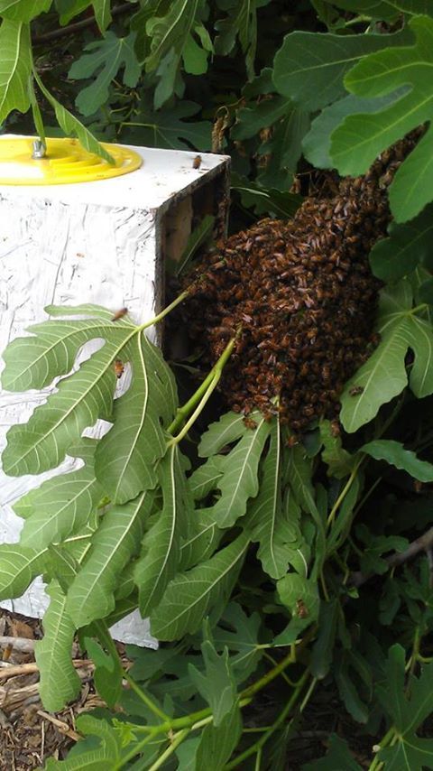 Fun picture from last week- one of our hives swarmed into our fig plants, yes his friends call him the Bee Whisperer. Except if you know anything about bees you know he was in very little danger of being stung because they are in "swarm" mode! Easiest swarm we ever caught, the branch was so heavy with bees it drooped to the ground, so we placed the nuc box next to it with some built comb and they marched right in and made themselves at home!