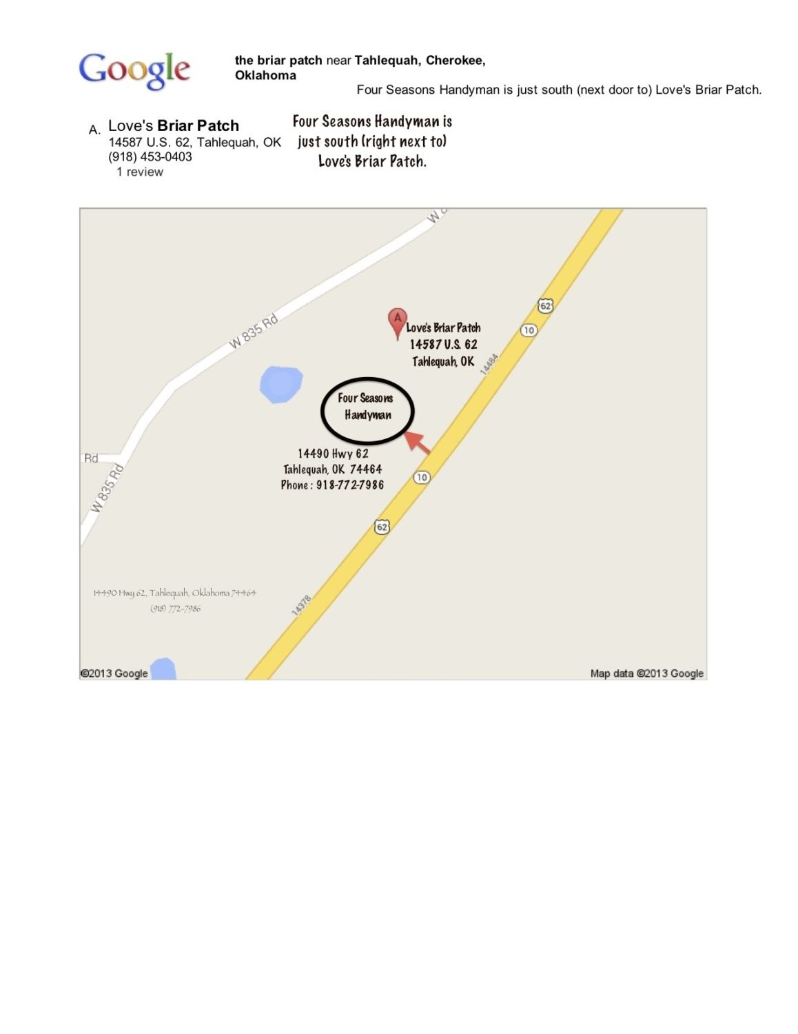 Our Labor Day Chicken Gathering will be held at the Four Seasons Handyman display site. The park-like setting is just south of Love’s Briar Patch. Right next to the Briar Patch. See (A), that’s the Briar Patch. Just south of that is an area with big open spaces and mature trees. You’ll see chicken coops and dog houses from the road. Parking for sellers will be inside the campus. Parking for buyers will be to the right of the gate, on the shoulder. Buyers can exit by driving north just a bit on the shoulder until they reach level ground.
