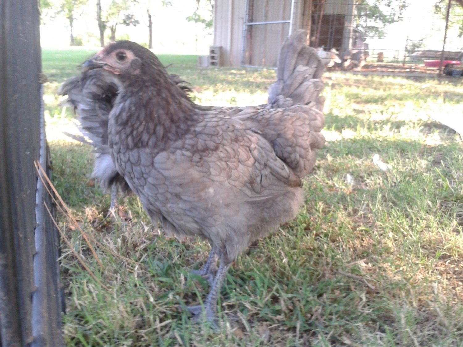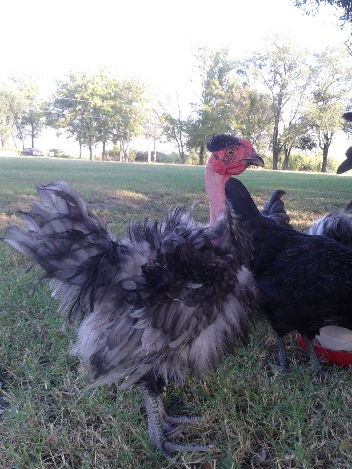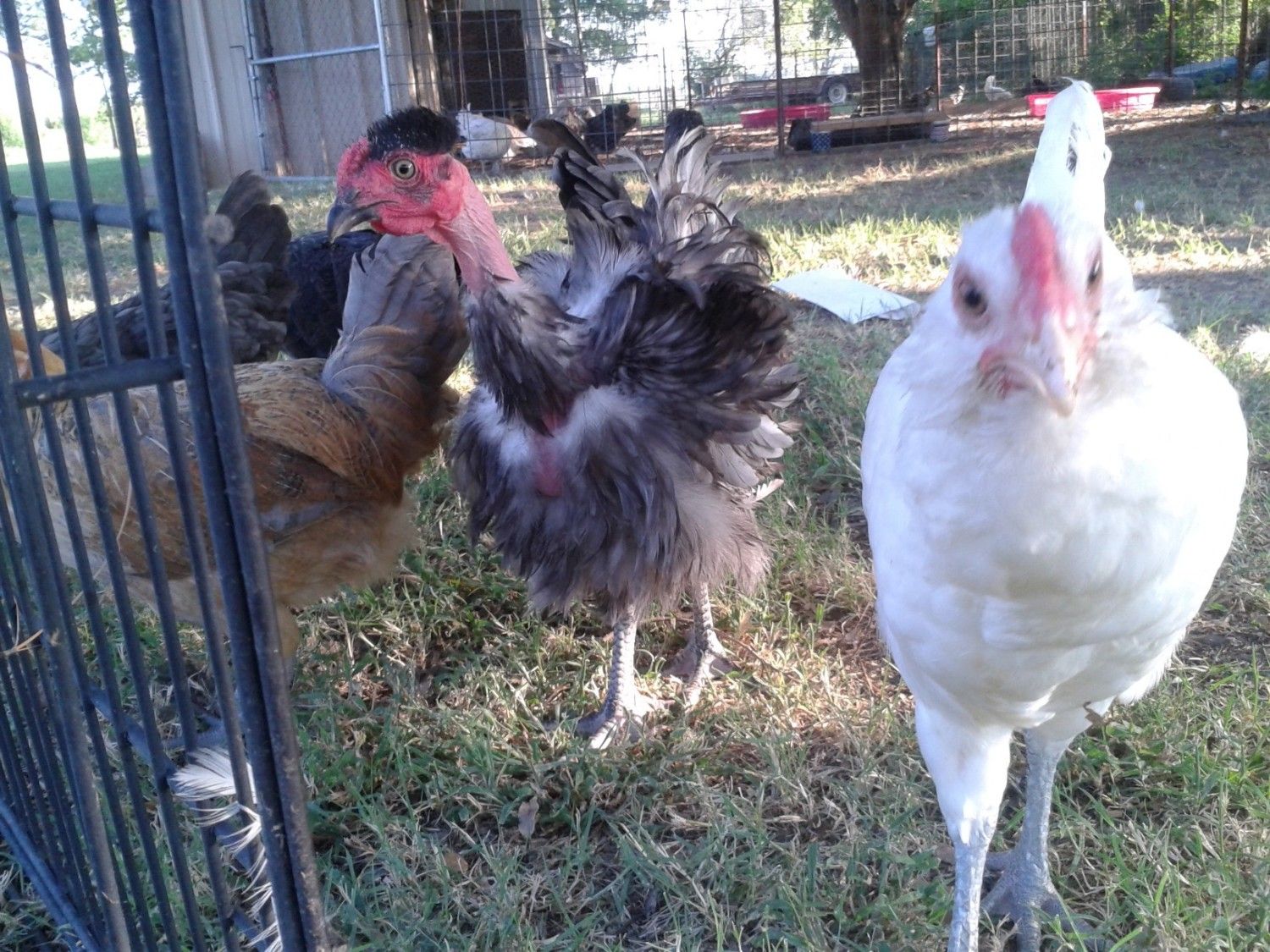 Does it make the two-syllable call, or only the one. Only the hens can make the "puh-trak" (many call it "buck wheat") sound. this one is a little young to be sure, but I think it is a male. Not so much because of the cupped wattles, though. Males are the ones that usually have that shape, but I have several females who do as well. I'm looking at the "cere", which is the band of red flesh the nostrils are in. It looks pretty pronounced to me, which usually indicates males. however, that look may change as it matures.