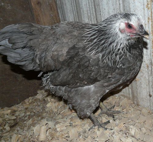 Robin, She is a Blue Birchen Wyandotte, offspring between a Blue Birchen F1 cockerel and a Blue Wyandotte hen. I'll set up a breeding pen to see if we can get more.
