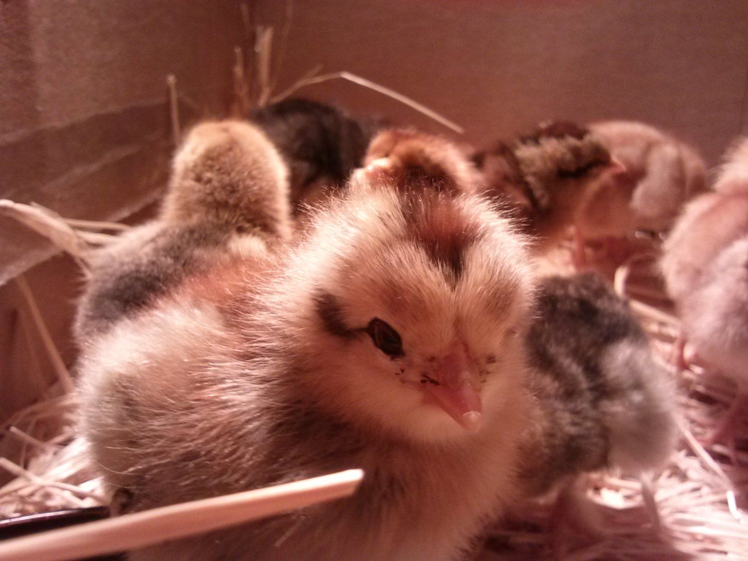 I moved the hen with 7 chicks down to a floor pen and momma was immediately teaching the chicks how to dust bathe...all 7 chicks did their little dust shuffle...so cute. They are now a week old.