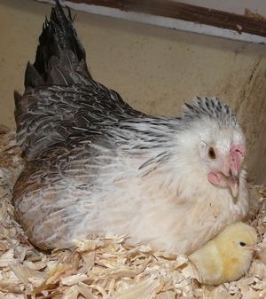 I didn't want to say anything until she was at least three days old. Meet little Willow! She's so perfectly round and fuzzy! She has the most beautiful double lobed Brahma hairdo! And so far she's peppy and feisty and seems healthy.