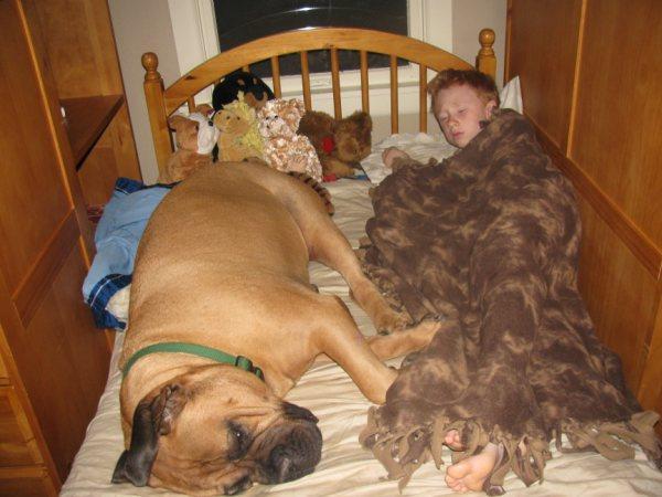 Speaking of spoiled here's a picture of Brody. This is how the grandkids have to spend the night unless they sleep w/grandma